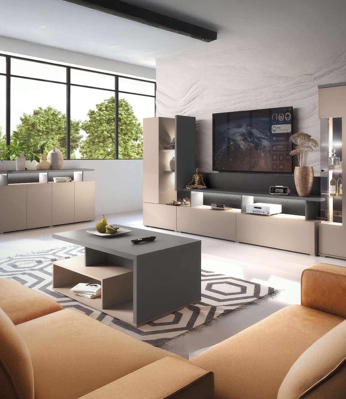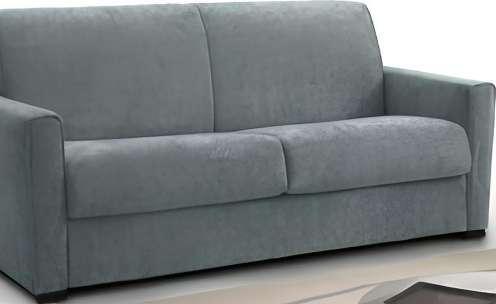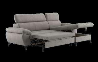 SALON CENTAUR. Tissu gris. Structure panneaux de particules+bois massif. Assise ressorts zip-zag+mousse T28. Pieds plastique. Fonction lit 135x204 cm, système automate DL. 255x148x70 cm. Code 0104120.