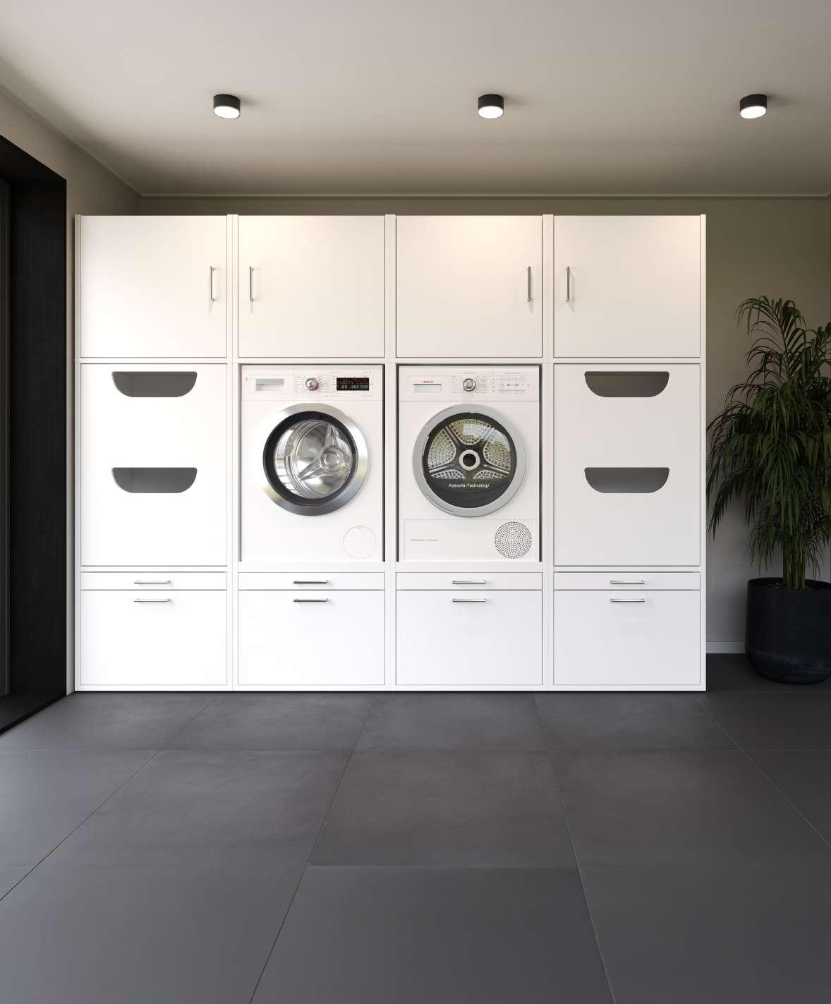 WASHTOWER BLANC AMÉNAGEMENT BUANDERIE COMPLÈTE. Photographie non contractuelle. Hors électroménagers.