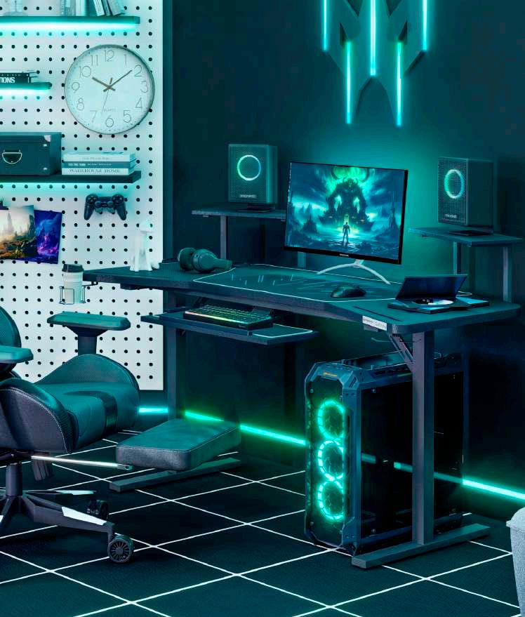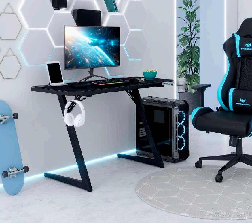 BUREAU GAMING PREDATOR. Noir. Plateau mélaminé et métal. Espace range-fils. 120x60x75 cm. Code 782901.