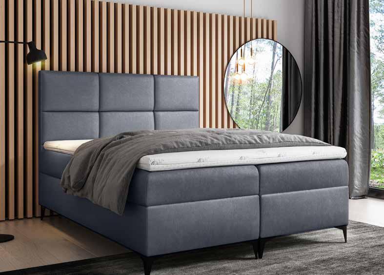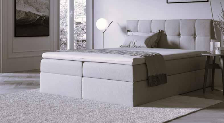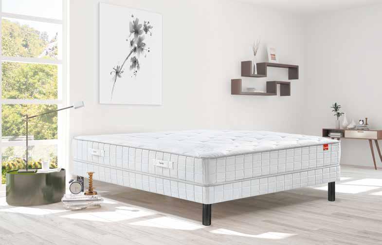 BOXSPRING CAPELLO ARCADIA. Tissu scala 92. Matelas à ressorts ensachés, 7 zones de confort, ht 21 cm. Fermeture à glissière sur 3 côtés, lavable à 30°C. Pieds plastique inclus.