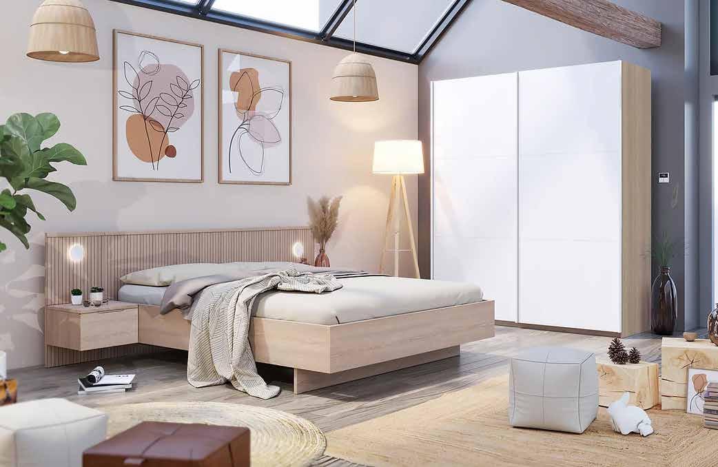 1499€ 74950€ ARMOIRE 2 PORTES 218 CM + LIT 160X200 CM AVEC ÉCLAIRAGE+2 CHEVETS CHAMBRE OPERA