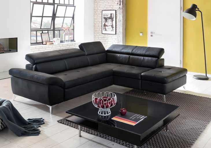 SALON JAMBA. Cadre en hêtre et épicéa. Assise avec ressorts nosag 30/37, dossier 21/30, accoudoir 21/30. Réglage de la profondeur d’assise, appuis-tête réglables. 293x285x78/95 cm. Angle droit. Code 010298. Angle gauche. Code 010299.