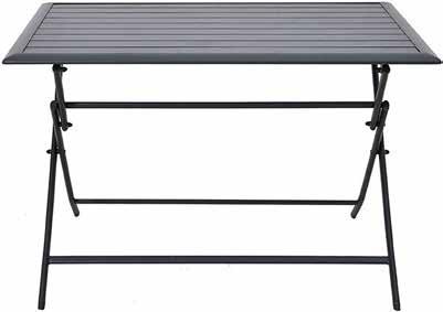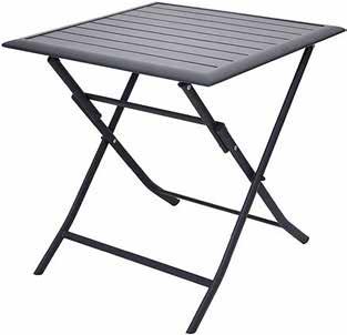 01 TABLE PLIANTE CANNES. Pliante. Coloris gris. 70x71x70 cm. Code 766489. Existe en 110x71x70 cm. Code 766490. 219€ 179€ CHAISE PLIANTE CANNES. Pliante en textilène. Gris. 36,5x81,5x38 cm. Code 766491. 02 SALON DE JARDIN LIMASOL. Table 150x72x90 cm. Fauteuil 56x107x65 cm. Acier et textilène. Code 767843 03 SALON DE JARDIN ANCONA. Métal bicolore. Ensemble table + 6 fauteuils. Fauteuil 64x83,5x57 cm. Code 766480. 04 CHAISE PLIANTE HANOI. Piètement métal, revêtement bois. 42x85x47 cm. Code 768072. 05 TABLE DE JARDIN PLIANTE HANOI. Piètement métal, plateau bois. 120x70x74 cm. Code 768071. 06 ENSEMBLE DE JARDIN CAGLIARI. Bleu. Table 60x71x60 cm. Chaise 42x45x81 cm. Code 766520.