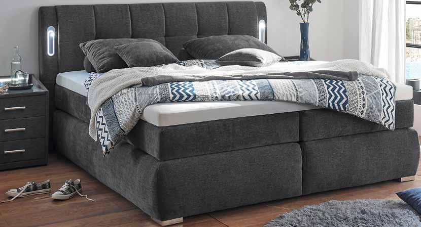 BOX LAVERNO. Tissu 100% polyester. 180x120x212 cm. Code 0700118. Chevet 3 tiroirs, éclairage inclus + USB. Code 070060. 469,95€ 234,98€ Coffre. Code 070061. 499,95€ 249,98€