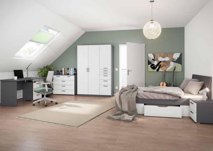 CHAMBRE ALLROUNDER. Coloris gris métal/blanc. Armoire 3 portes, 5 tiroirs. 136x197x54 cm. Code 040052. 495€ 340€ Lit pour couchage 90x200 cm (hors literie). 95x90x209 cm. Code 040053. 205€ 140€ Tiroir-lit 90 cm. 80x28x203 cm. Code 040054. 175€ 119€ Chevet 2 tiroirs. 47x43x42 cm. Code 040055. 99,90€ 69,90€ Bureau 3 tiroirs. 140x75x66 cm. Code 040056. 329,90€ 219,90€ Commode 5 tiroirs. 93x81x42 cm. Code 040057. 329,90€ 219,90€ CHAMBRE LEONARDO. Armoire 4 portes. 200,3x210,5x54,2 cm. Code 030044. 799,99€ 399,99€ Lit pour couchage 160x200 cm (sans literie) + 2 chevets. 255,5x205,7x90 cm. Code 030045. 699,99€ 349,99€ Commode 3 tiroirs. 79,9x99,8x41,5 cm. Code 030046. 299,99€ 150€ ARMOIRE 3 PORTES+ LIT 90X200 CM+1 CHEVET CHAMBRE ALLROUNDER -250€ 79999€ 54999€ Lit existe en 140-160-180x200 cm sur commande Armoire existe en L 47-69-91-136 cm et élément d’angle + ARMOIRE 4 PORTES 200 CM+ LIT 160X200 CM+2 CHEVETS CHAMBRE LEONARDO -50% 149998€ 74998€ 11