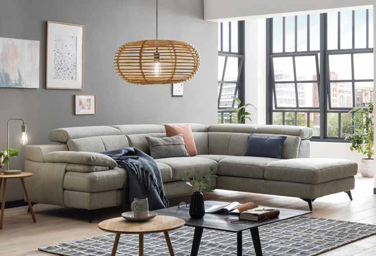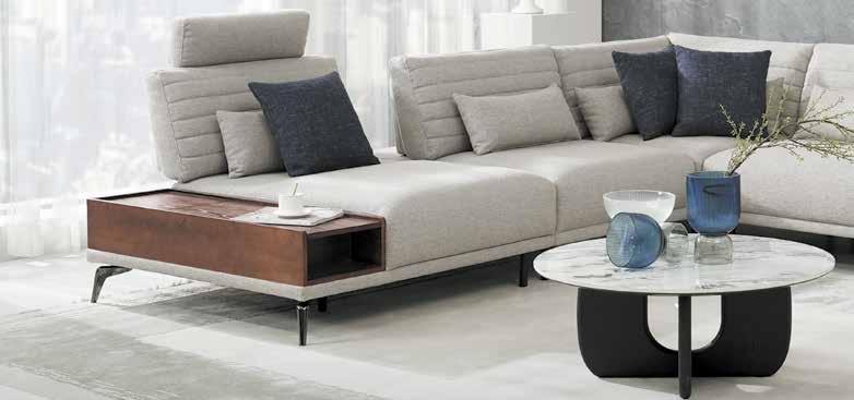 SALON JAMBA. Cadre en hêtre et épicéa. Assise avec ressorts nosag 30/37, dossier 21/30, accoudoir 21/30. Réglage de la profondeur d’assise, appuis-tête réglables. 293x285x78/95 cm. Angle droit. Code 010298. Angle gauche. Code 010299.