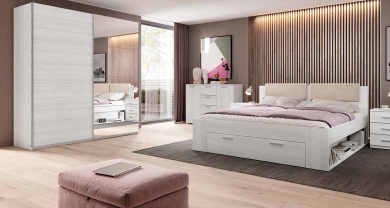 8 Lit existe en 180x200 cm sur commande Lit avec éclairage LED inclus + CHAMBRE APOLLON. Chêne artisan Black/Oak. Armoire 2 portes coulissantes. 226x210x62 cm. Code 030074. 799,95€ 599,95€ Lit pour couchage 160x200 cm (sans literie) + 2 chevets. Tête de lit capitonnée optique cuir. Chevets suspendus avec éclairage LED verical. 259x100x243 cm. Code 030073. 1195,95€ 799,95€ MATELAS RECORD. 672 ressorts ensachés. Coutil stretch 100% polyester. Haute densité. 160x200x21 cm. Code 0700217. ARMOIRE 2 PORTES 226 CM+ LIT 160X200 CM+2 CHEVETS AVEC ÉCLAIRAGE CHAMBRE APOLLON 199590€ 139990€ 160X200 CM MATELAS RECORD -50% 49999€ 24999€ Épaisseur 21 cm Soutien ferme Indépendance de couchage Certification OekoTex + ARMOIRE 2 PORTES 200 CM + LIT 140X200 CM + 1 CHEVET CHAMBRE GALAXY 139499€ 949€ Armoire existe en L220 et L270 cm sur commande Lit existe en 160x200 et 180x200 cm sur commande Tiroir lit inclus + CHAMBRE GALAXY. Armoire 2 portes 1 miroir. 200x210x61 cm. Code 40016. 749,50€ 523,50€ Set 2 freins pour armoire «en option». Code 60071. 35,99€ 25,99€ Lit pour couchage 140x200 cm avec tiroir (sans literie). 146x205x101 cm. Code 40017. 499,50€ 349€ Chevet 3 tiroirs. 47x56x42 cm. Code 40018. 110€ 76,50€ Commode 2 portes 3 tiroirs. 132x93x38 cm. Code 40020. 249€ 179€ Gain de place avec les tiroirs sous le lit confort