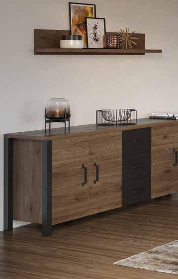 CHAISE BELLAGIO. Avec accoudoirs. Gris anthracite. Code 0200228. PU gris. Code 0200198. PU taupe. Code 0200199. Tissu or. Code 0200227. Tissu taupe. Code 0200229. SÉJOUR OLIN. Coloris chêne/bois noir. MDF, panneaux de particules. Bahut 4 portes, 3 tiroirs. 220x79x50 cm. Code 0200211. 599,99€ 299,99€ Existe bahut en 3 portes sur commande, 147x79x73 cm. Table avec allonge. 130-175x85x77 cm. Code 0200212. 399,99€ 199,99€ Vitrine 3 portes, 3 tiroirs. 101x146x43 cm. Code 0200213. 599,99€ 299,99€ Meuble TV. 147x57x43 cm. Code 0200214. 349,99€ 174,99€ Table basse 1 tiroir. 90x42x56 cm. Code 0200215. 269,95€ 134,97€ Vitrine 2 portes avec éclairage. 56x191x43 cm. Code 0200216. 469,99€ 234,99€ CHAISE BELLAGIO -100€ 24999€ 14999€ Existe en tissu gris anthracite, tissu or, tissu taupe, PU gris et PU taupe Avec accoudoirs + TABLE AVEC ALLONGE 130-175 CM SÉJOUR OLIN -50% 39999€ 19999€