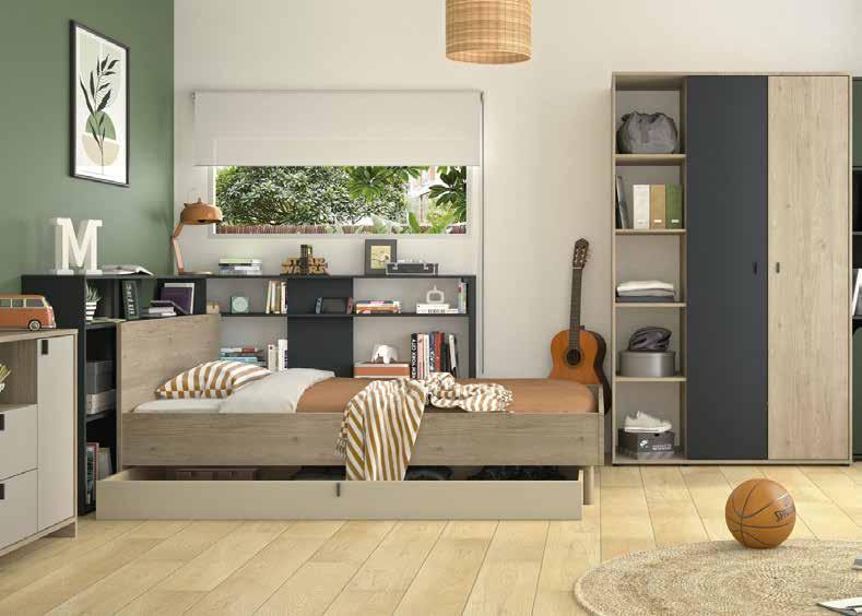 CHAMBRE RITMO ARMOIRE 2 PORTES AVEC BILBIOTHÈQUE + LIT 90X200 CM
