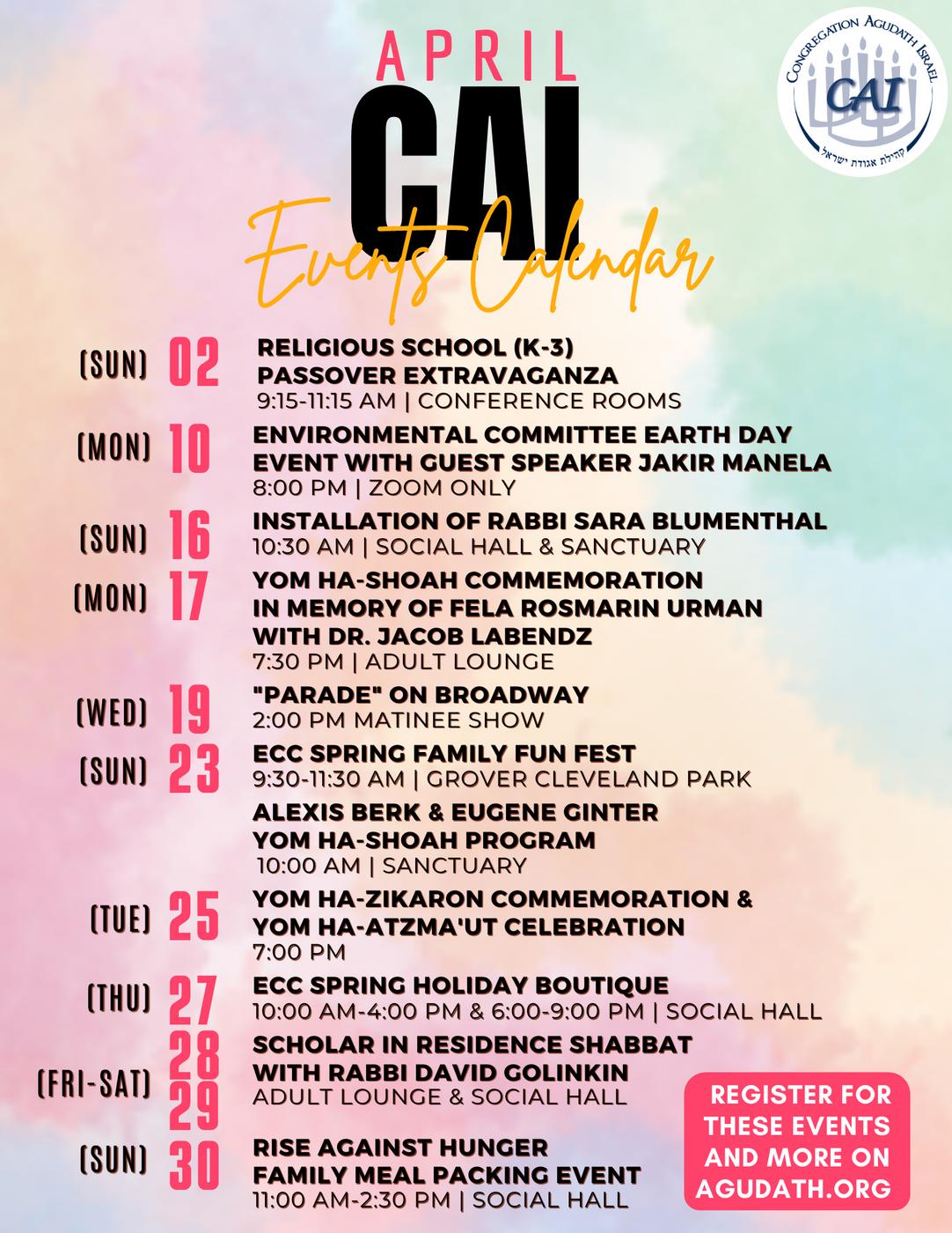 My life has been immensely enriched by getting to know many of you in the nine months since I arrived in Caldwell, and I hope my presence has enriched yours. Aviv, spring, is a time of new growth and renewal, when we have the opportunity to ritually acknowledge the special relationship we are building together In that spirit, please join me on Sunday, April 16, at 10:30 a.m. as I officially become installed as assistant rabbi of CAI. It will bring me so much joy to celebrate with you this shehecheyanu moment in my life and in the life of our wonderful CAI community.