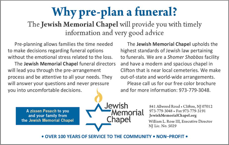 Prime cemetery plots are available, below prevailing “retail rates,” for our congregants and their Jewish family members, in nearby Clifton at the King Solomon Memorial Park Section of the West Ridgelawn Cemetery and the Menorah Section of the East Ridgelawn Cemetery.