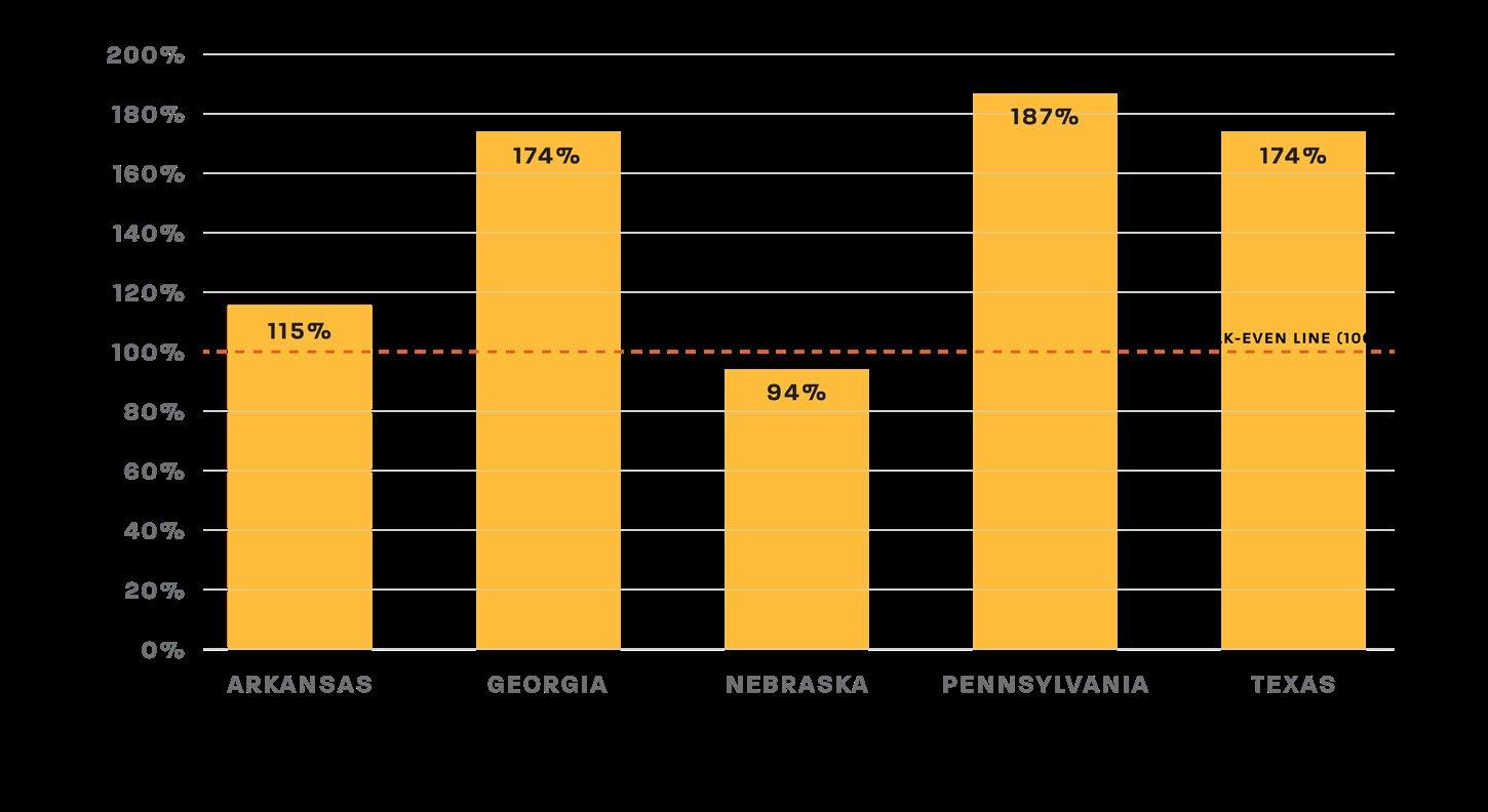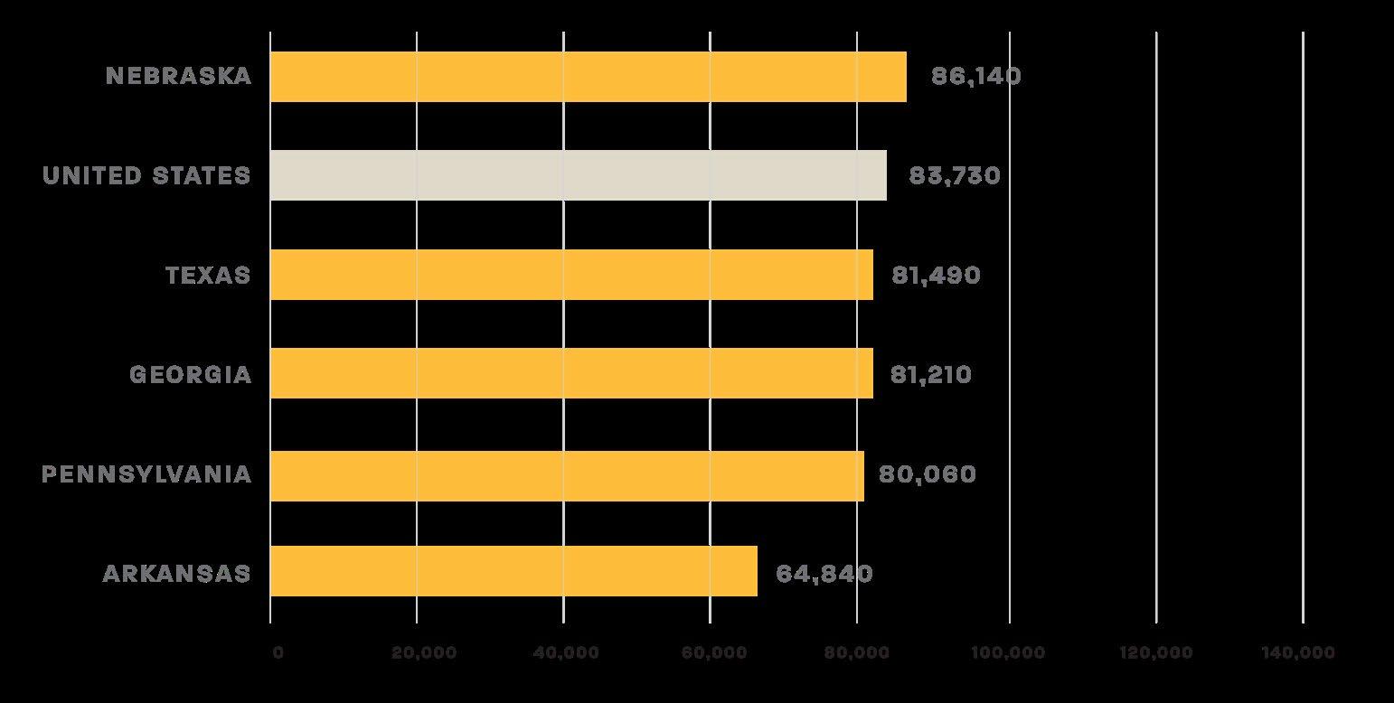 • In Georgia, Texas, and Pennsylvania, the average transportation cost alone is 174–187% of total income. This means that even a single month of car expenses outpaced the total earnings from 80 hours of work.