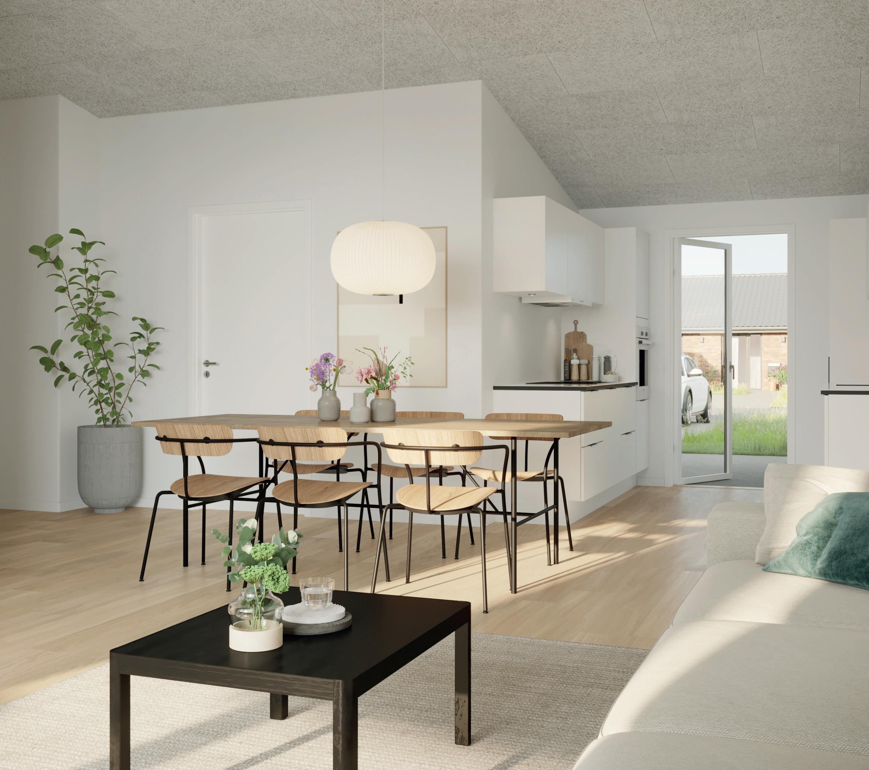 Boligerne ved Alstrup Have bliver opført i kvalitetsmaterialer! Husene bliver bl.a. opført med alle hvidevarer installeret og Genvex anlæg. Der bliver loft til kip i stue/køkken og en stor terrasse udenfor, hvor der er plads til at nyde udelivet.