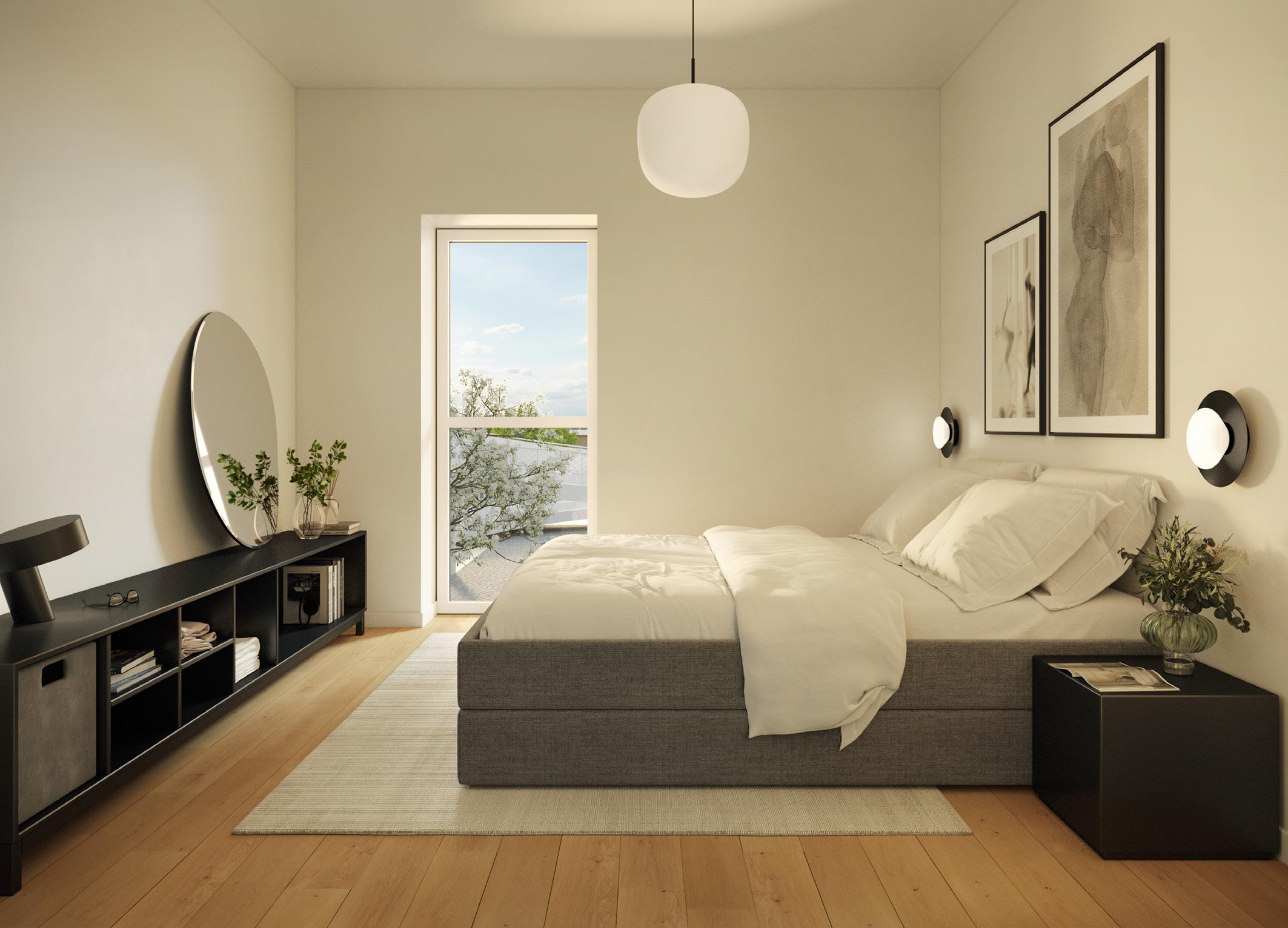 De 24 stilrene lejeboliger udfolder sig i form af 2- og 3-værelses lejligheder på 90-100 m², hvis funktionelle planløsning bl.a. råder over et åbent køkken-alrum med et flot naturligt lysindfald, der inviterer til kulinariske oplevelser og sociale sammenkomster, mens stuen skaber plads til hygge og afslapning.