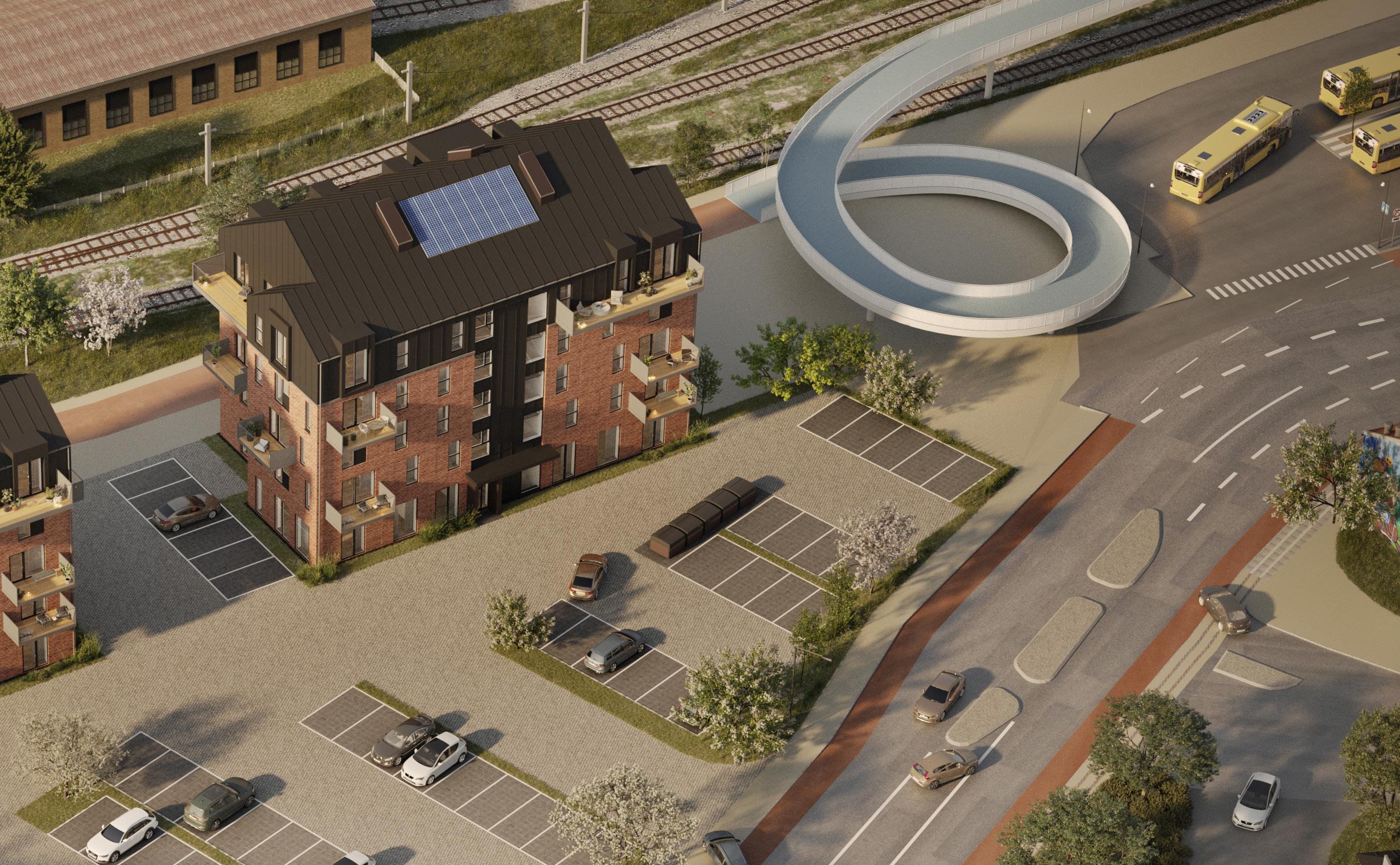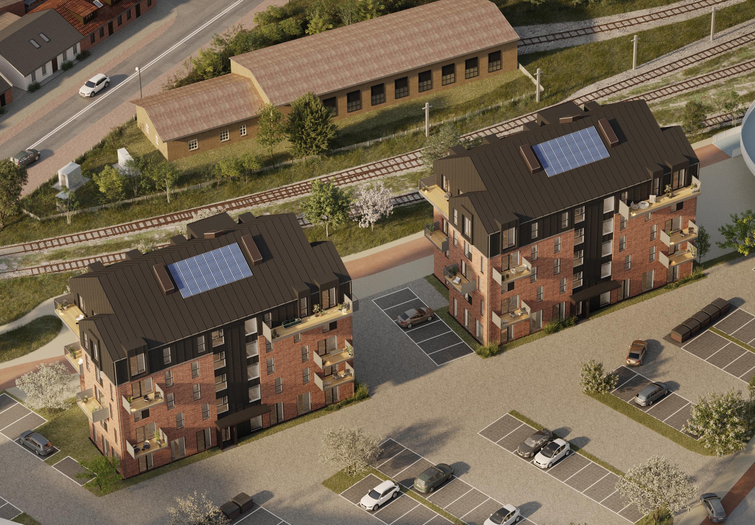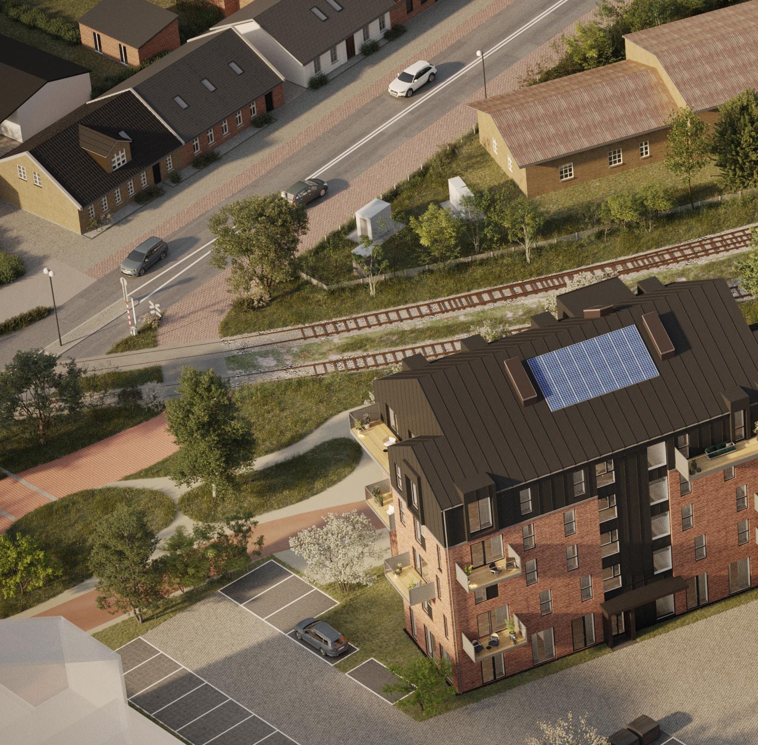 Omkring byggeriet kan du følge den charmerende “promenade” langs jernbanens strækning, som vil forbinde dig mellem Holstebros gågade og rutebilstationen og banegården. Ligeledes planlægges der etablering af grønne stier til Slagterigrunden samt Holstebro Lystanlæg. Der er ikke mange skridt til nabobygningen, hvor der etableres ungdomsboliger samt Rema 1000 og en hyggelig café, der gør det muligt for nærområdets beboere at mødes og nyde fællesskabet.