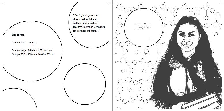 The designs for each sub-project went through several iterations. We envisioned several different objects and symbols for the overall concept and theme for the brochure, coloring book, and stickers. We focused on different layouts and iterations that would effectively engage the middle schoolers and convey the stories of the success students.