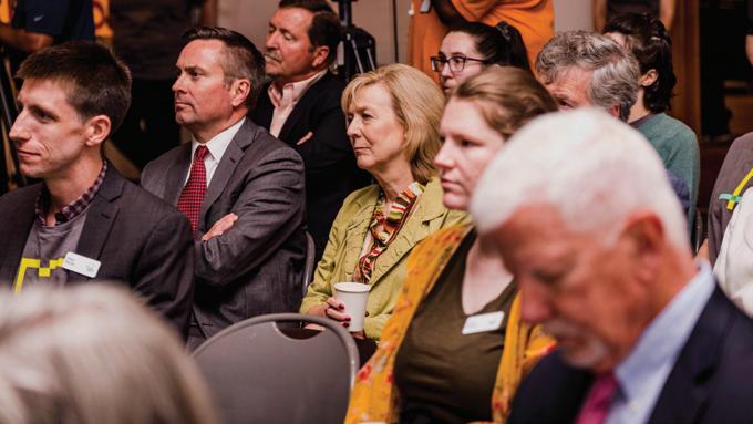 The Inspire Center is a makerspace supported by the Gawlicki Family Foundation. Veterans and community members listen as veterans reflect on their experiences.