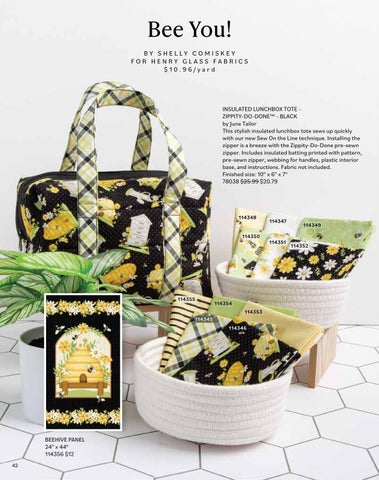 INSULATED LUNCHBOX TOTE ZIPPITY-DO-DONE™ - BLACK by June Tailor This stylish insulated lunchbox tote sews up quickly with our new Sew On the Line technique. Installing the zipper is a breeze with the Zippity-Do-Done pre-sewn zipper. Includes insulated batting printed with pattern, pre-sewn zipper, webbing for handles, plastic interior base, and instructions. Fabric not included. Finished size: 10" x 6" x 7" 78038 $25.99 $20.79