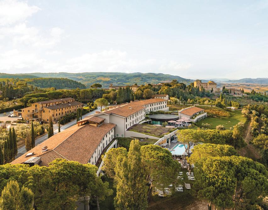 Nesled in the lush Tuscan countryside, the five-star Castelfalfi is a dreamlike retreat where nature, hospitality and wellbeing co-exist. Built with traditional materials including wood and stone, the hotel blends seamlessly into the vineyards, forests and fairways. Guests can indulge in Mediterranean cuisine, explore the estate on horseback, enjoy charming shops and a medieval hamlet. Castelfalfi offers a serene escape in the heart of Tuscany.