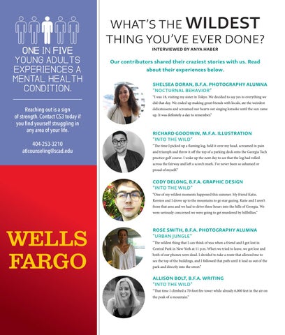 CODY DELONG, B.F.A. GRAPHIC DESIGN “INTO THE WILD” “One of my wildest moments happened this summer. My friend Katie, Kersten and I drove up to the mountains to go star gazing. Katie and I aren’t from that area and we had to drive three hours into the hills of Georgia. We were seriously concerned we were going to get murdered by hillbillies.”