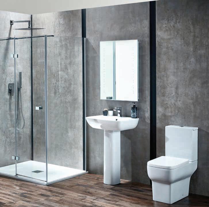 Showers 42 - 45 Furniture 18 - 32 Enclosures 60 - 73 Sanitaryware 4 - 11 Special Suites 12 - 15 Cloakroom Solutions 16 - 17 LED Mirrors & Cabinets 33 - 35 Brassware 36 - 41 Baths & Bath Screens 46 - 57 Radiators & Towel Warmers 58 - 59 Wall Panels 74 - 75 Shower Trays 76