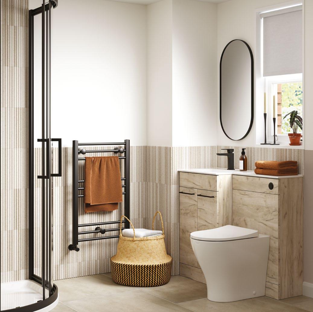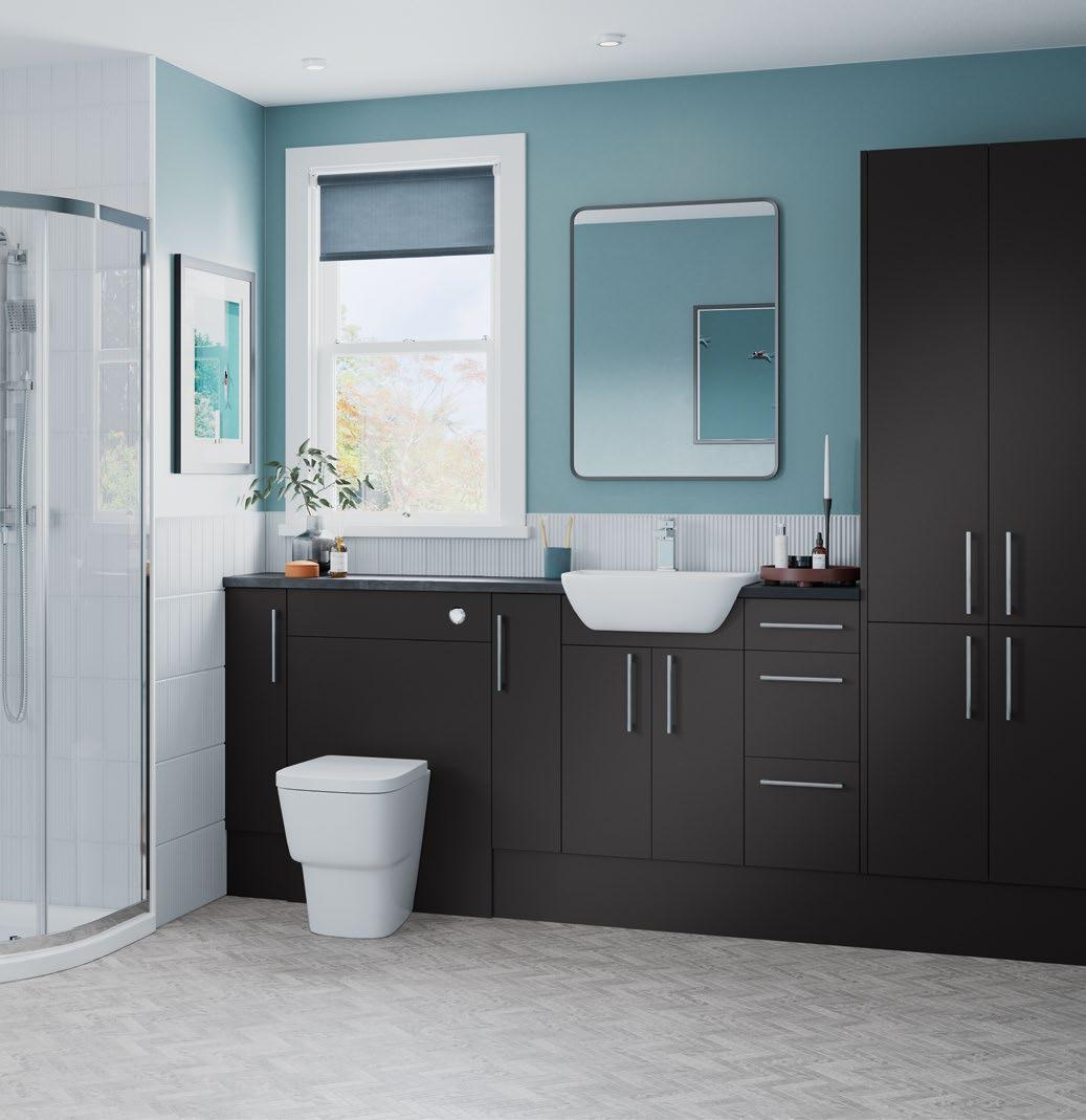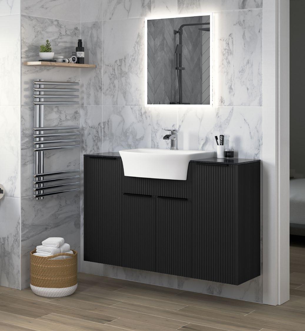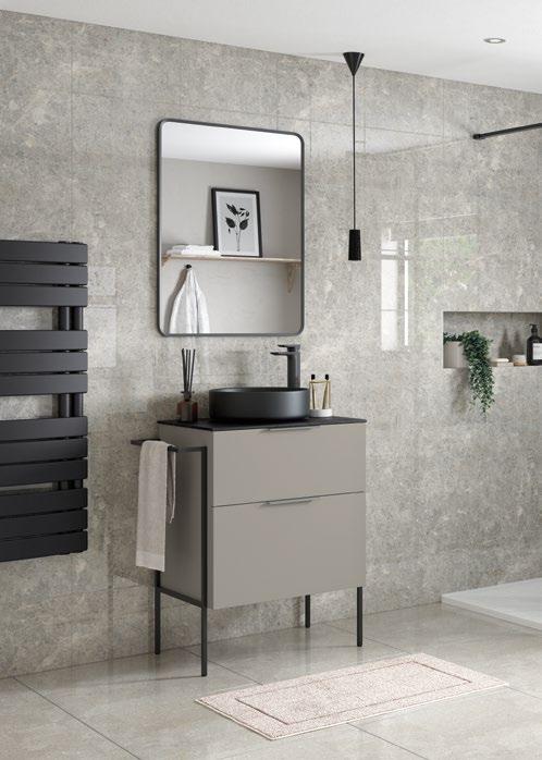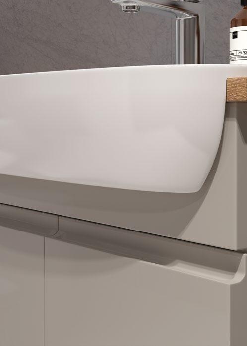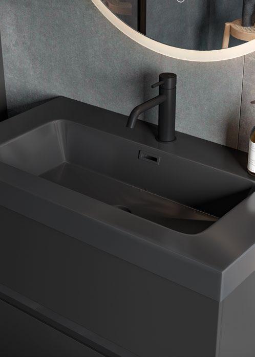 Available in a soft Matt Cotton combined with an Oak Effect insert or in a sleek Matt Black with a Black Glass insert, the design offers a seamless look with the option of a coordinated coloured basin; a clean white ceramic basin is an option too for yet another contrast!