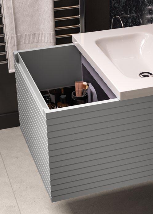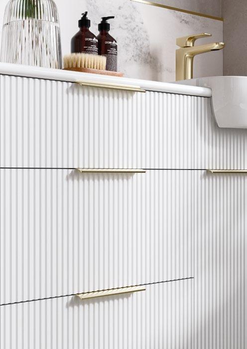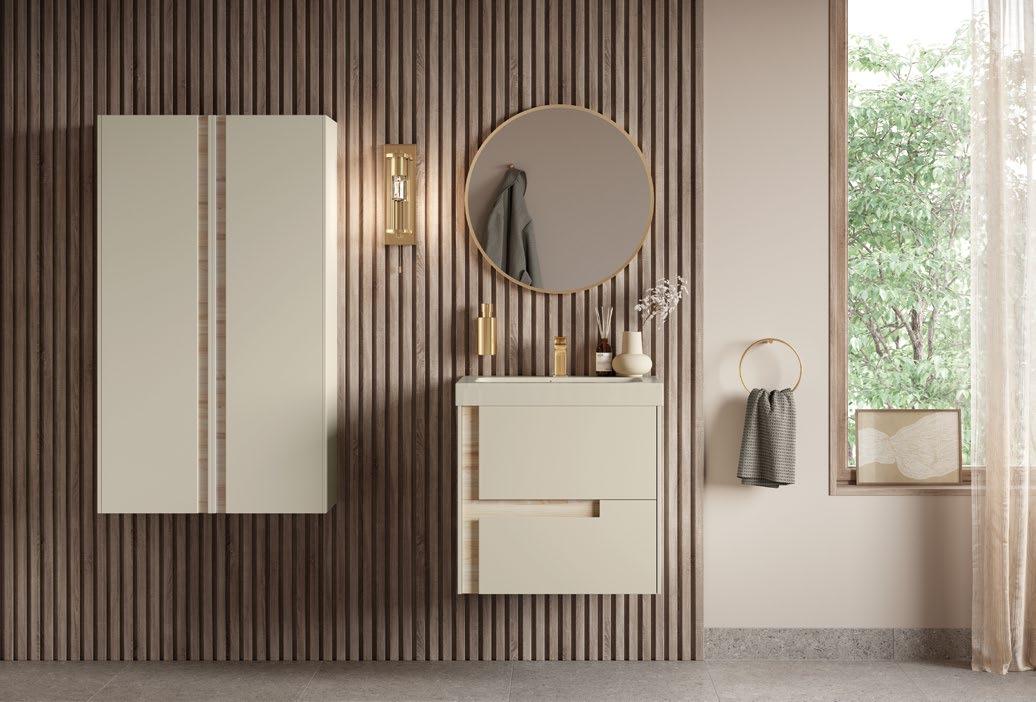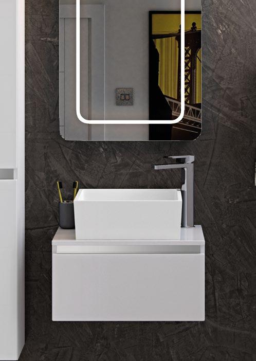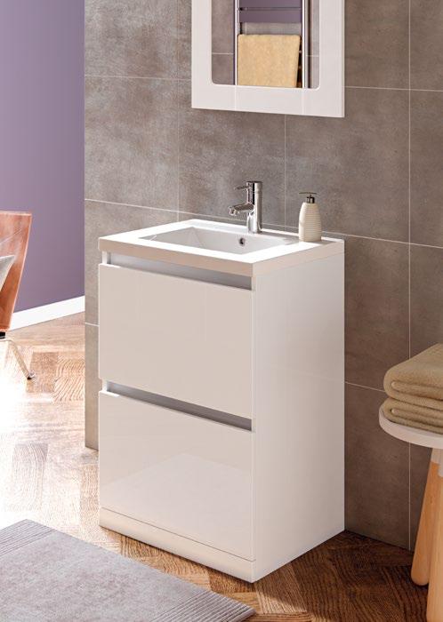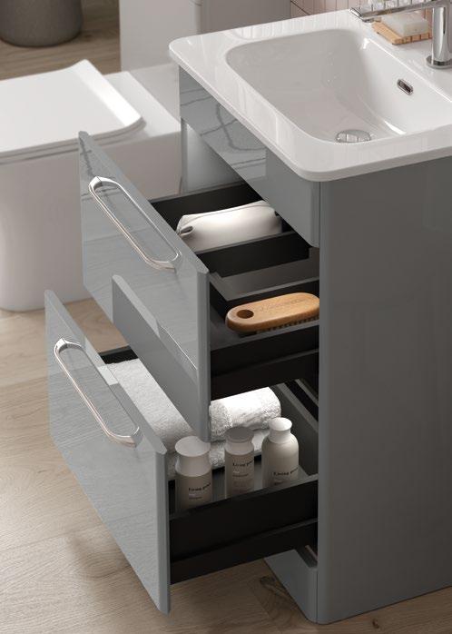 The basin units can be styled with a thin edge, ceramic, sit in basin or with a coordinating worktop and washbowl. There is also the option to team the units with elegant legs to give a floor standing look! Add to that the stunning choice of colourways you’ll find Pyrgos is a very desirable, customisable collection.