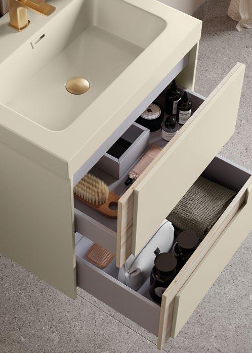 £750 £750 £750 199280 199278 199279 Includes colour matched worktop OPTIONAL COLOUR MATCHED LEGS W105 x H342 x D105mm M att Storm Blue Matt Cotton Matt Clay £75 £75 £75 199304 199302 199303 Set of 2 (2 or 4 legs can be used on each unit) excluding WC & tall unit WALL HUNG 800MM 2 DRAWER BASIN UNIT & TOP W800 x H513 x D450mm