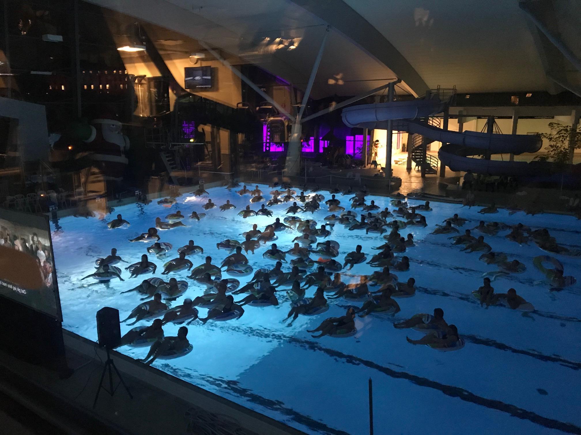 Der er fantastisk at se film i svømmehallen - men denne biograf er alligevel ikke for alle. Begivenheden går i al sin enkelthed ud på at flyde rundt i en badering i svømmehallen i mørket, mens klassikeren bliver vist på storskærm.