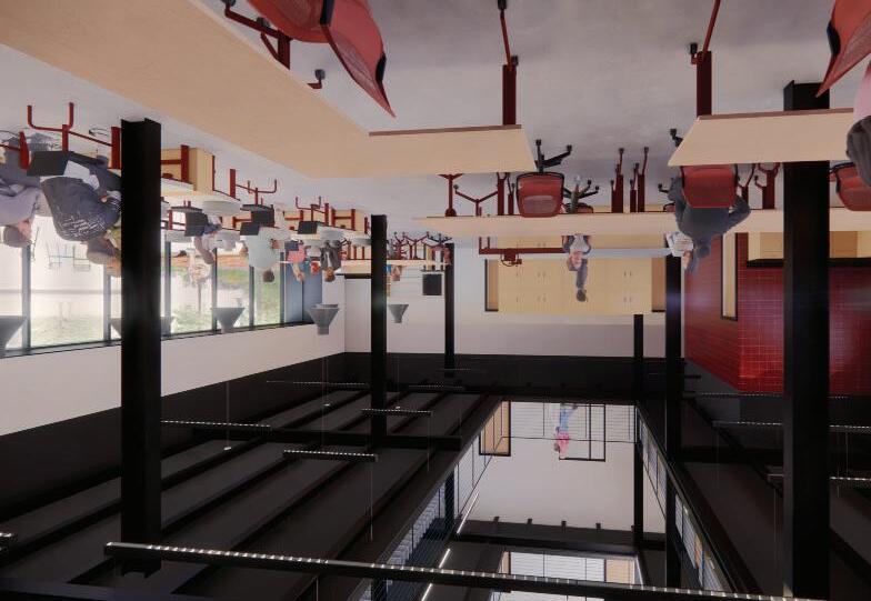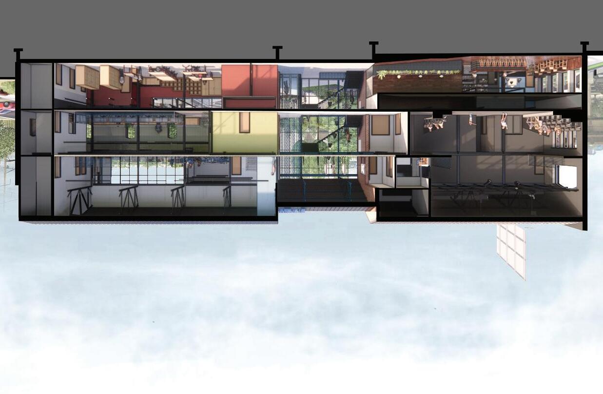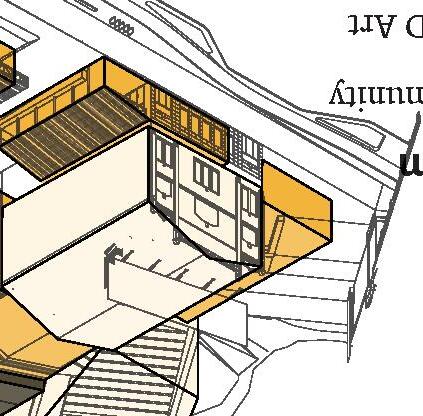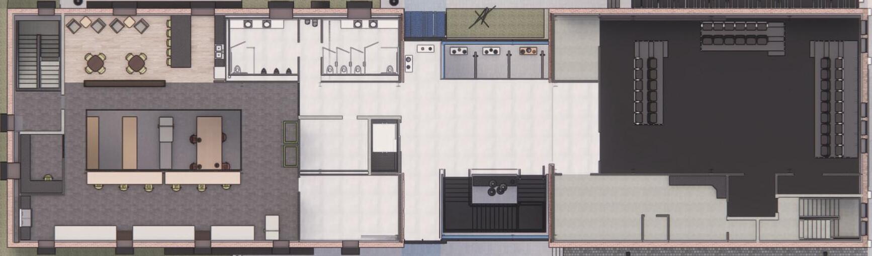 A bar and restaurant with both indoor and outdoor seating was included to give the community an all-hour place to congregate. This element would also draw visitors outside of the art community and provide more visibility for the artists and their work.