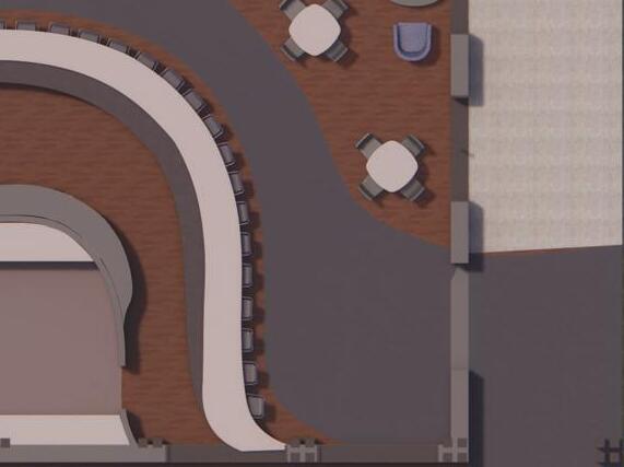 The plan form is derived from a simple, two curve, parti. The bottom curve shapes the primary circulation through the space. The two curves then divide the space, with the back of house being tucked behind the top curve, the primary space of the bar sits in the central, elliptical space, and the public seating area filling outside the bottom curve. The placement of the Mezzanine provides overhead enclosure to the service spaces. Overall, the gentle, organic curves provide an implied movement.