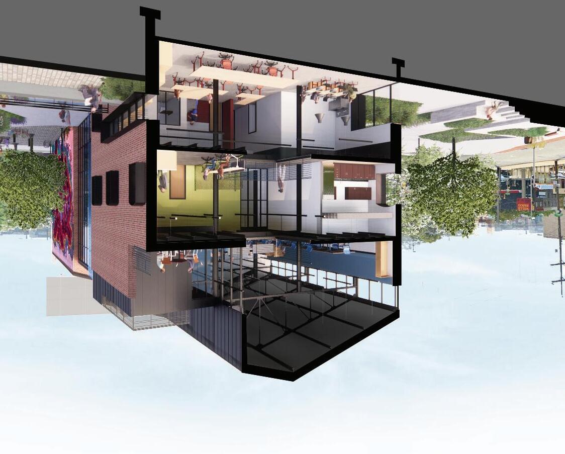This project was completed as part of an interdisciplinary, collaborative studio. After researching and analyzing a portion of Broad Street in North Philadelphia, the studio underwent a master planning charette to determine different projects to address the needs of the existing community. My group chose an arts center to provide a place to build community around shared interests, and to share culture, perspective, and express identity.