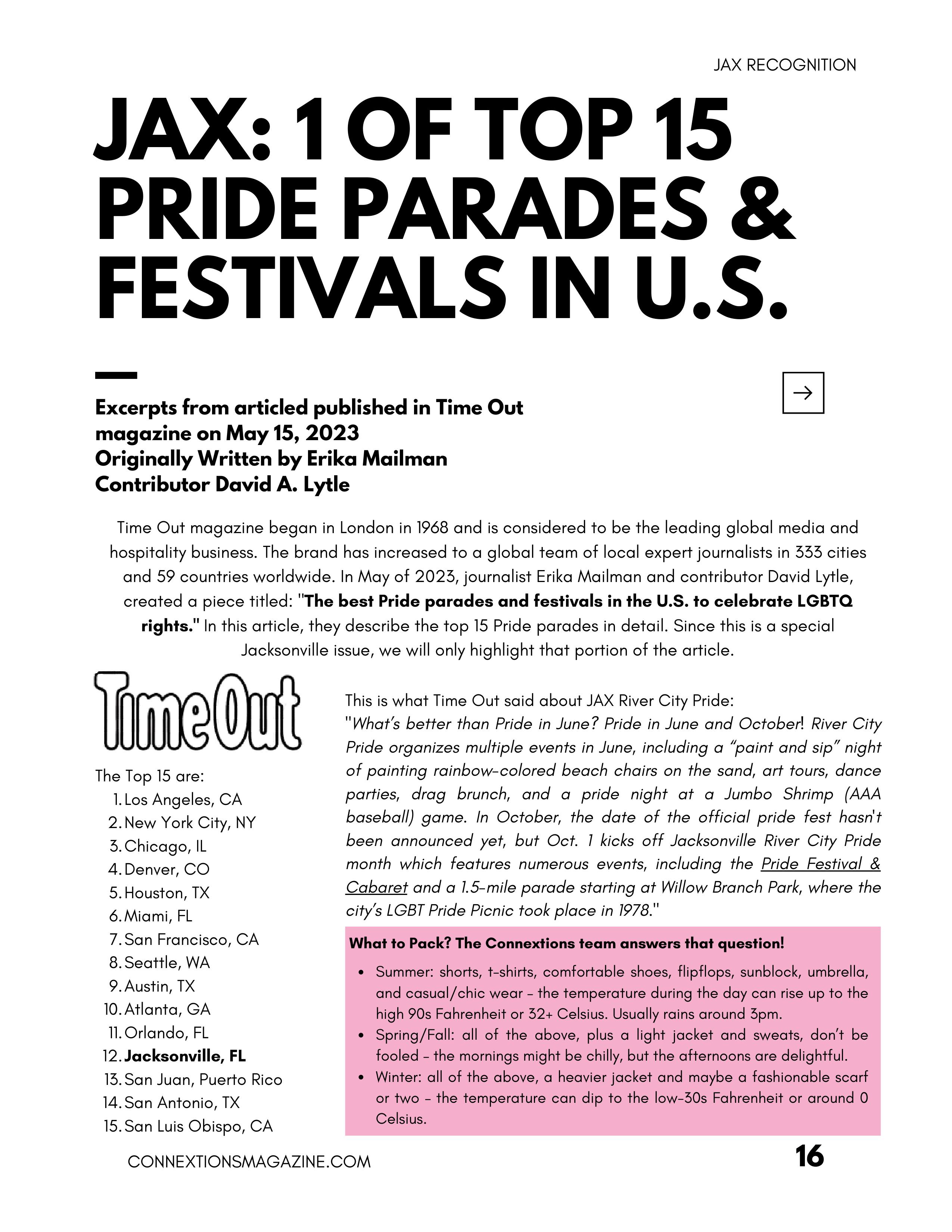 Connextions Magazine is thrilled to be working with #JAXRCPride. Find out how to get to Jacksonville, how to get around, where to stay, and all about the official JAX River City Pride 2023 events!
