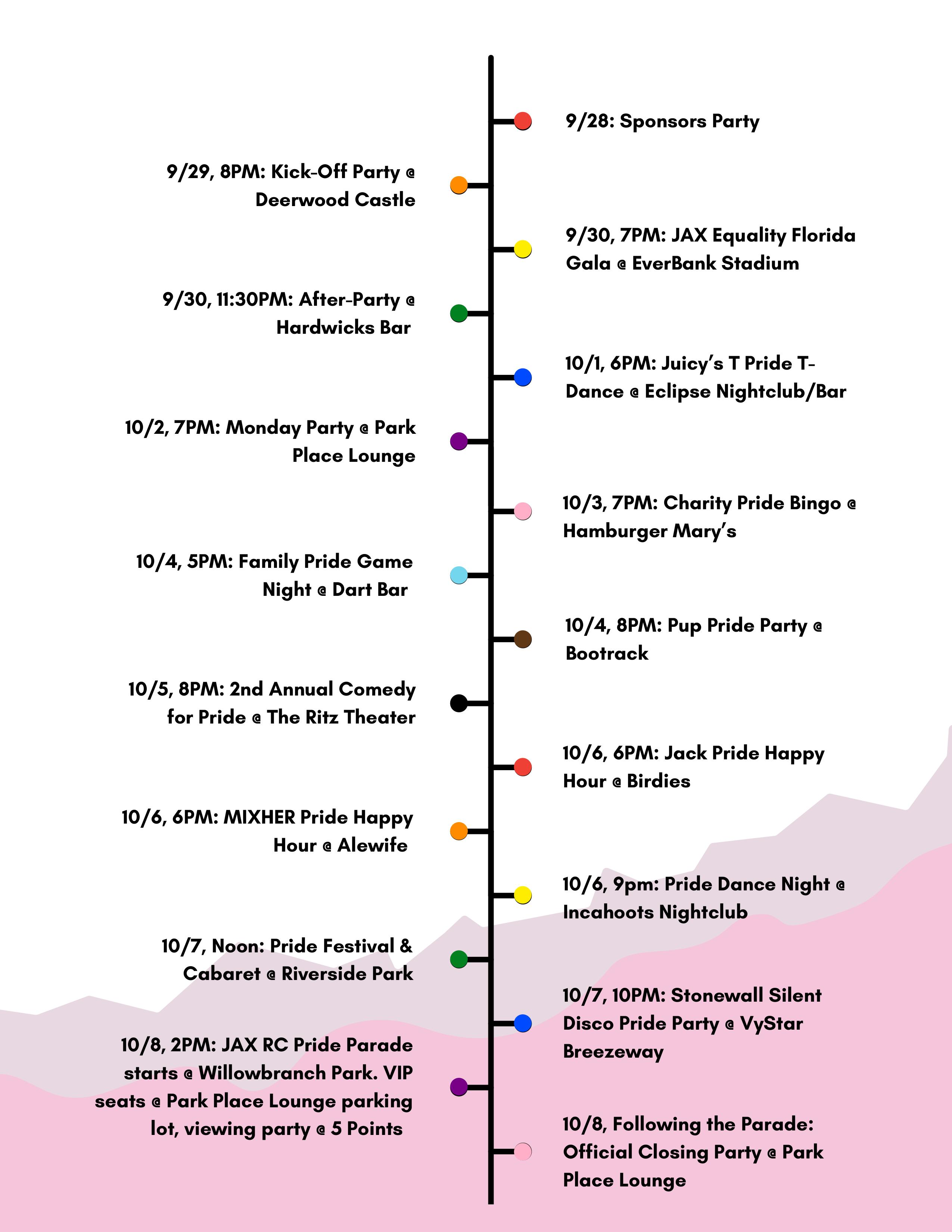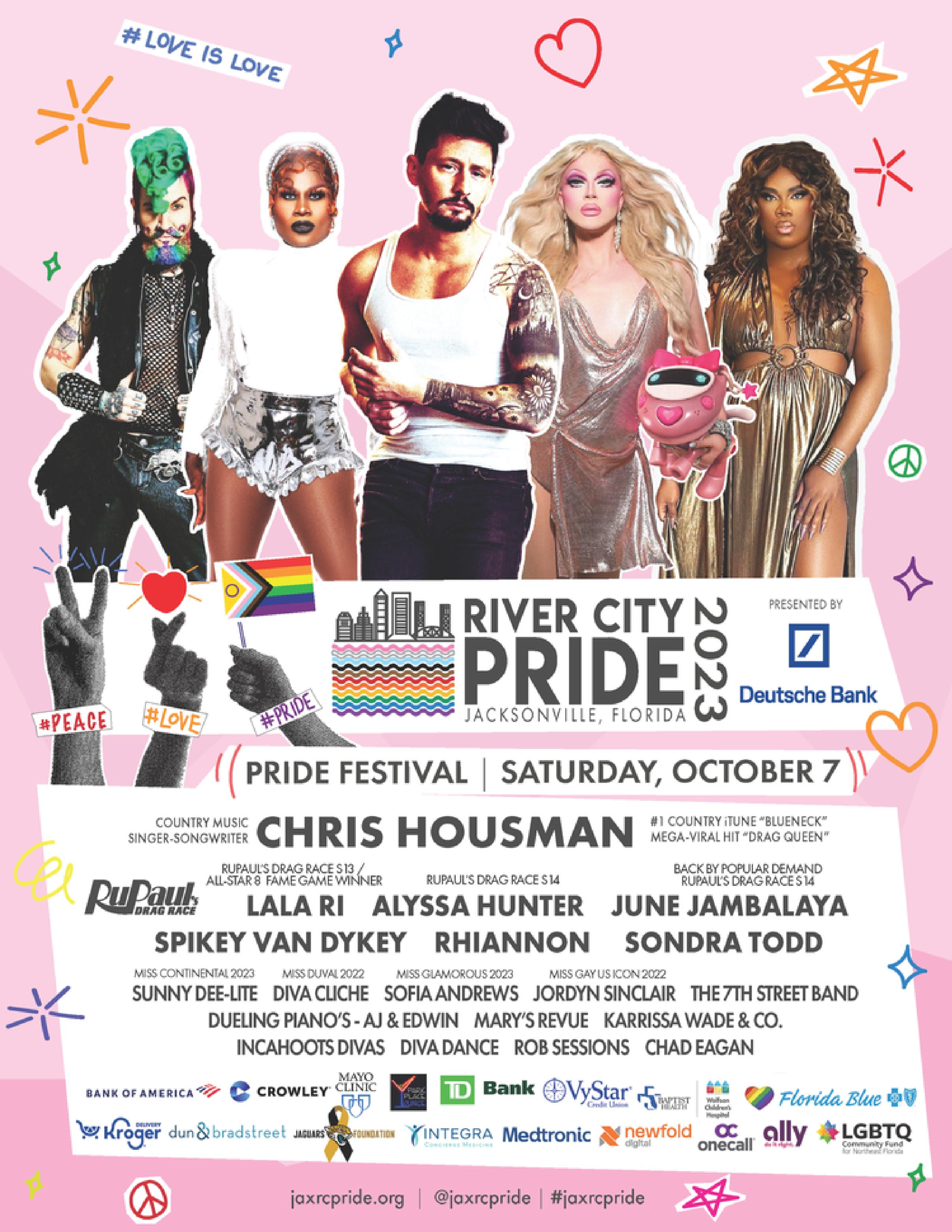 Jax River City Pride, Inc is a Nonprofit 501(c)3, All-Volunteer organization inspired to make a long-lasting impact in Jacksonville’s LGBTQA+ Community. Celebrated in October, River City Pride welcomes everyone to come together and enjoy the celebration of our community.  Our mission statement and policy of this organization is to provide equal opportunities/support without regard to race, religion, national origin, gender, sexual orientation, gender identity, age, or disability.