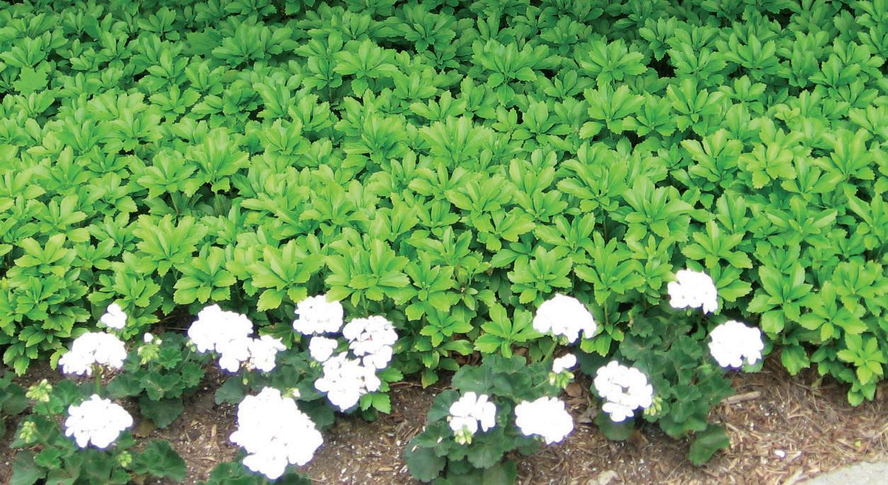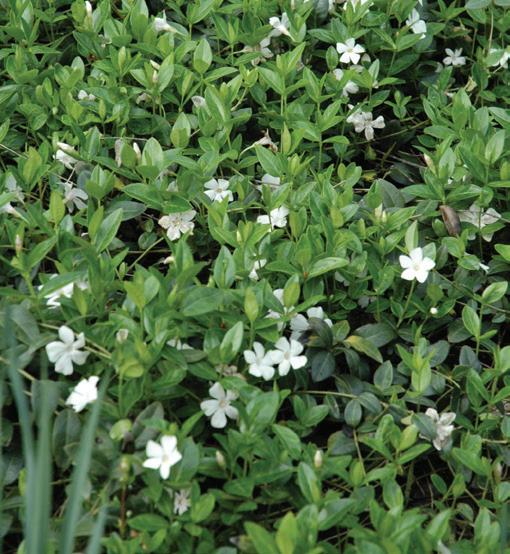 Rich green, evergreen foliage studded with white flowers. Excellent for use in shady areas. Site carefully, provide containment.