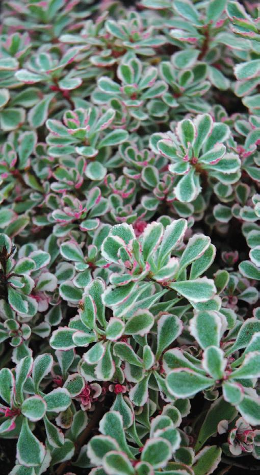 Forms a flat mat of light green foliage with tiny white flowers. It is slower to establish but unforgettable when in bloom.