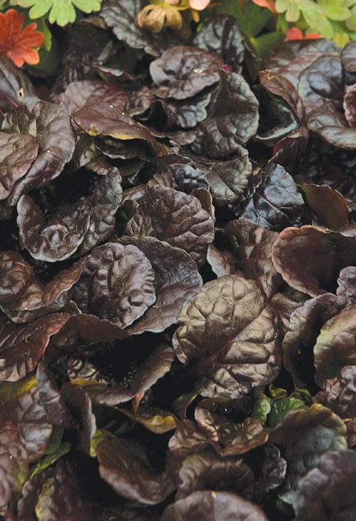 Deep-purple leaves with scalloped edges create a dense, compact groundcover. Great moisture tolerance.