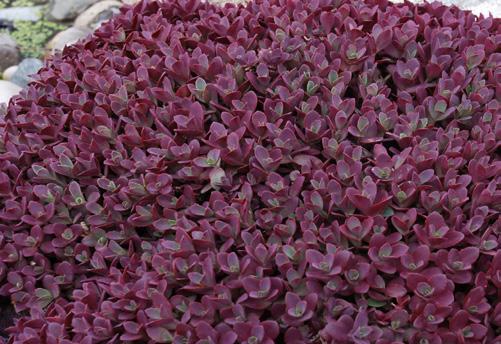 Deep magenta-red flowers smother a carpet of tiny dark green leaves. Perfect for edging or rock gardens.