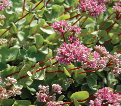 Very green almost succulent leaves, larger then other varieties. Studded with pink flowers.
