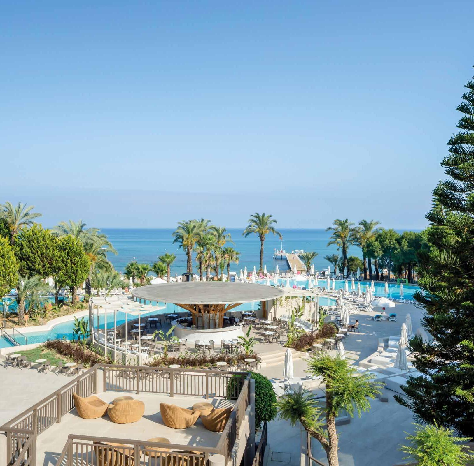 This highly rated 5 Star hotel serves an Ultra Luxury All Inclusive concept. The Paloma Perissia, which has a unique aesthetic with just 352 rooms, includes à la carte restaurants and bars with a new generation food and beverage concept, a patisserie, a renovated pool area, redecorated suites, rooms and an amphitheater. Only fifty-fiveminute transfer from Antalya Airport and a short walk along the coastal path or a local bus or taxi will take you to the old fishing village of Side with its harbour and numerous Roman antiquities.