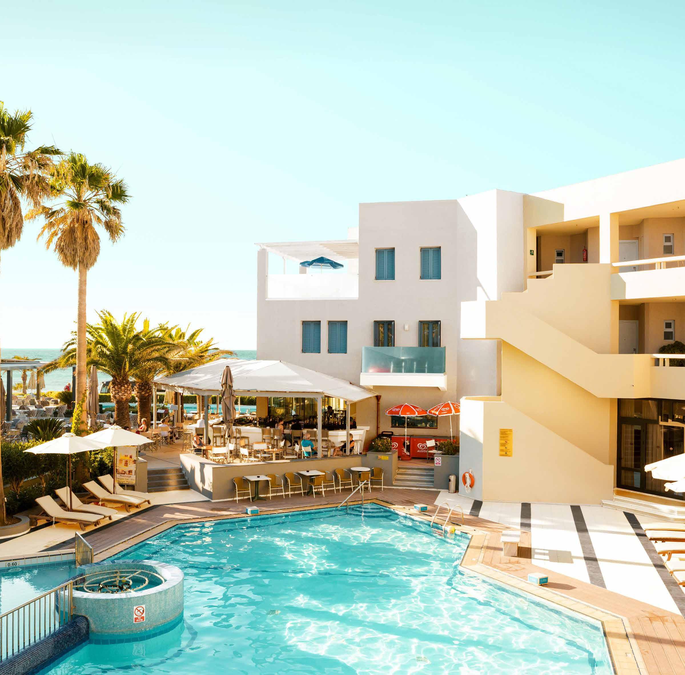 The Sentido Aegean and adjacent Pearl Beach Hotel offer a fantastic location and a choice of 4 or 5 star accommodation. There is a short easy flat walk to the bridge room. Both hotels sit right next to a gently sloping sandy beach and close to the picturesque historic centre of Rethymnon. You will be surrounded by a beautifully landscaped, typically Greek garden and two freshwater swimming pools. The City centre is just 25 minutes walk away and there are shops, bars and restaurants in the immediate area.
