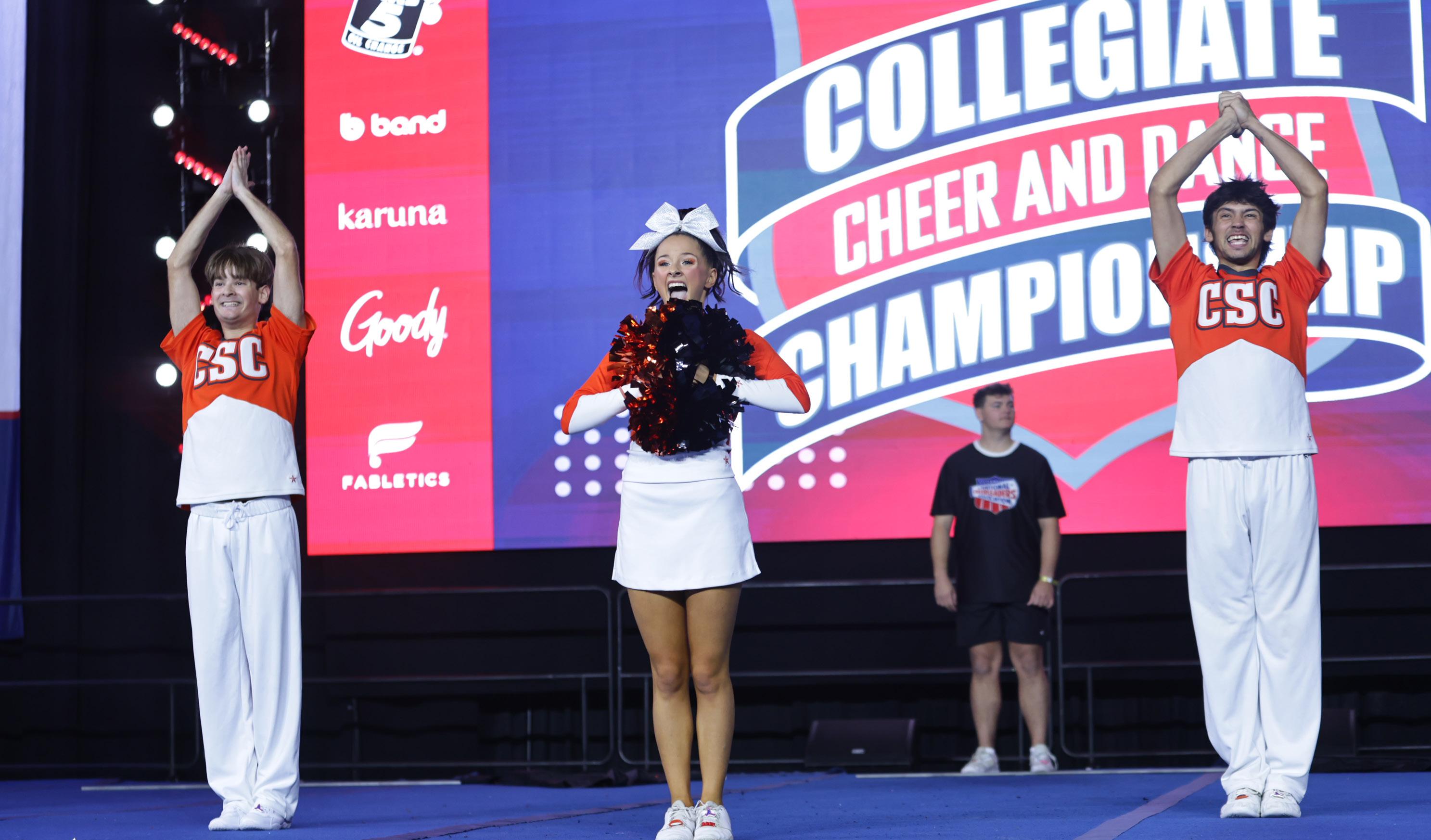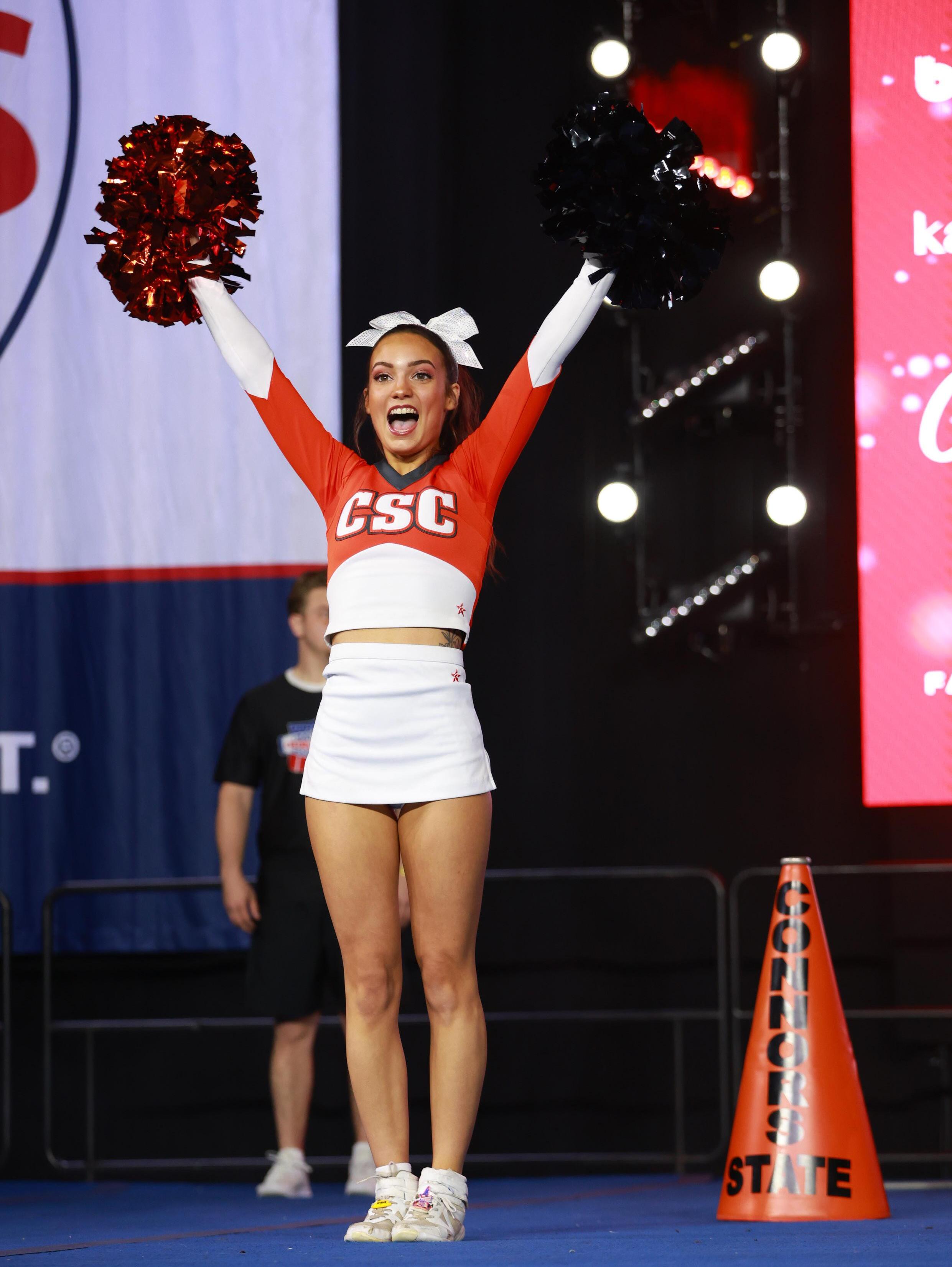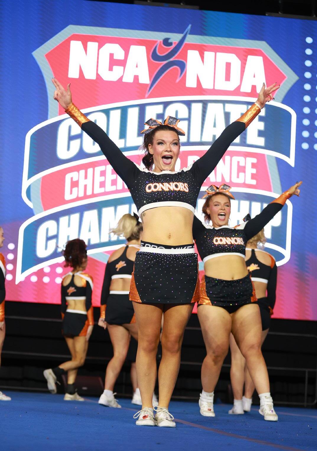 Riley Grace takes the mat in Daytona with the Connors State College Spririt Rally team.
