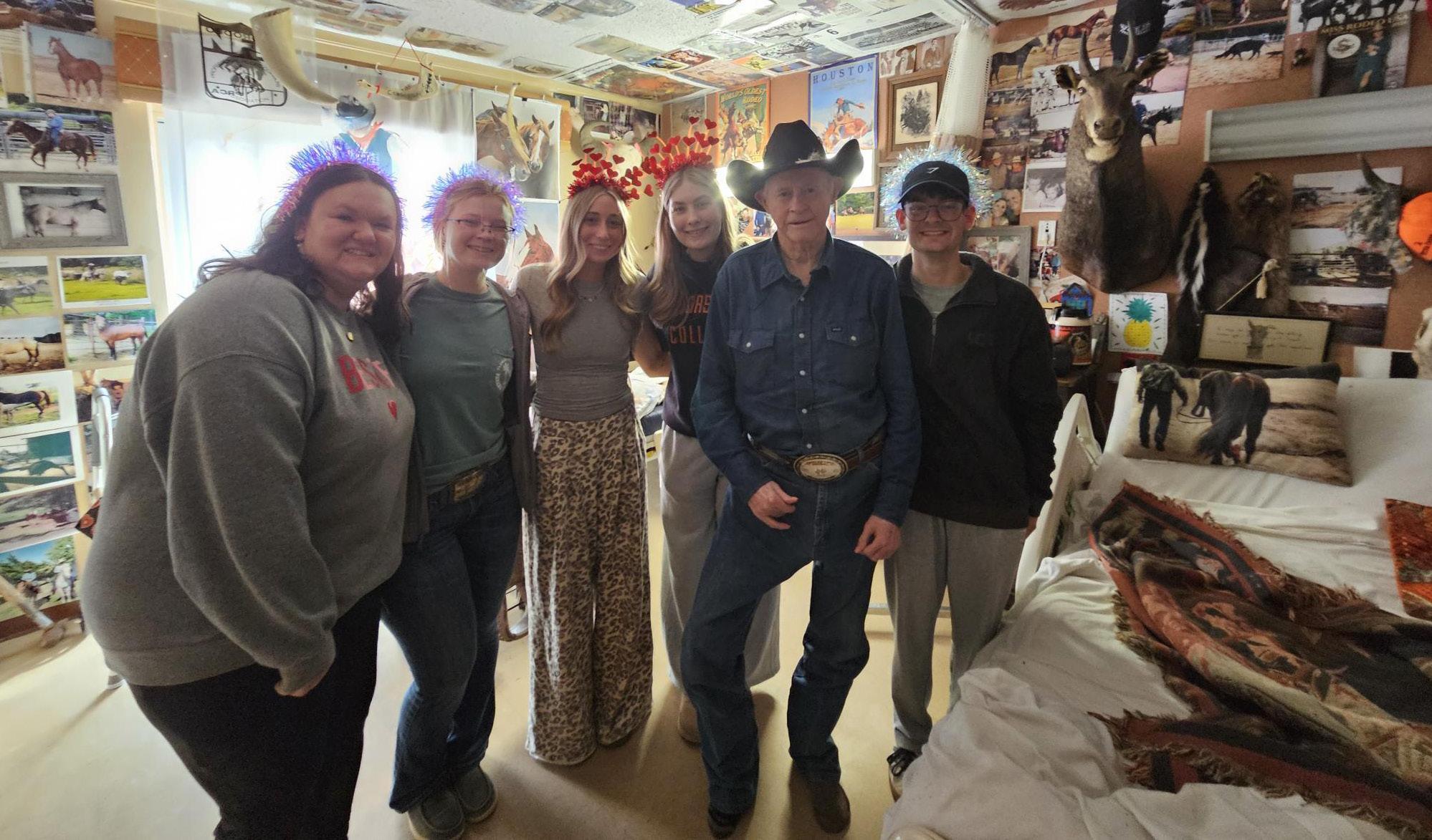 One of the most memorable moments of the day was our visit with Mr. Phillip Smith, a retired rodeo cowboy and ranch hand whose life stories carried both grit and grace. With pride in his voice and a sparkle in his eye, he welcomed us into his room, sharing tales from his years in the arena and on the ranch. His wall of buckles told a story all its own, and each one represented hard work, perseverance, and a life well lived. Our students listened intently, captivated not just by his experiences but by the passion and pride he still holds.