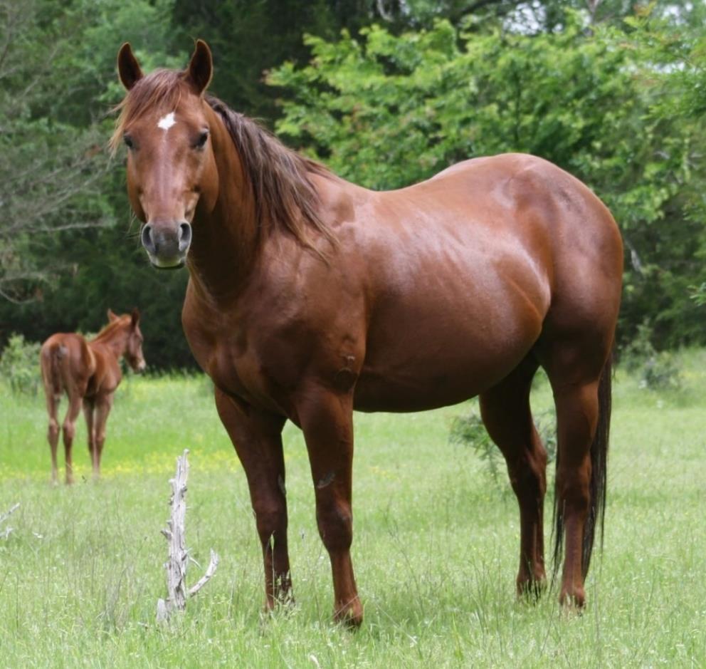 Although we were unable to register this mare, we do know her true and correct pedigree; by Miss N Command and out of a Wilywood bred mare. We have sold many outstanding foals out of her in the past. Sorrel yearling colt by Rey Del Dellinger at the ranch. Pasture exposed to same 1/1-6/1.