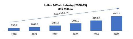 The Indian economy has been growing at a steady rate, which can provide a conducive environment for the growth of the Edtech industry.The market size of the edtech industry in India was estimated to be around $1.96 billion in 2020 and is expected to grow at a CAGR of around 22% from 2021 to 2026. The increasing popularity of online education is also likely to attract more investment into the sector, which will further drive its growth.