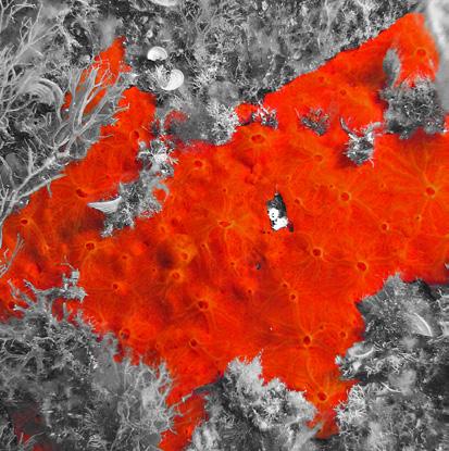 The orange puffball gets its name from its exterior surface. Apart from visuals, the flagellum’s purpose is to allow for current flow around the sponge.