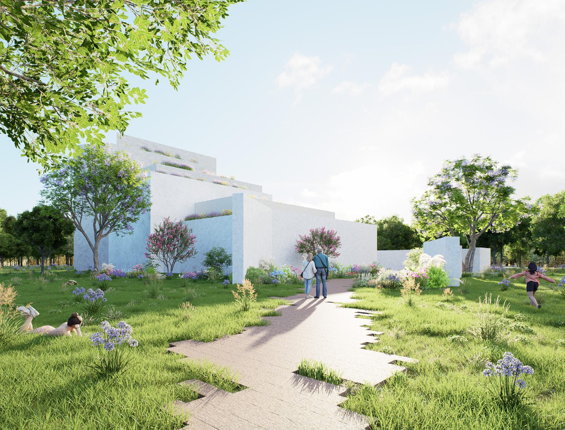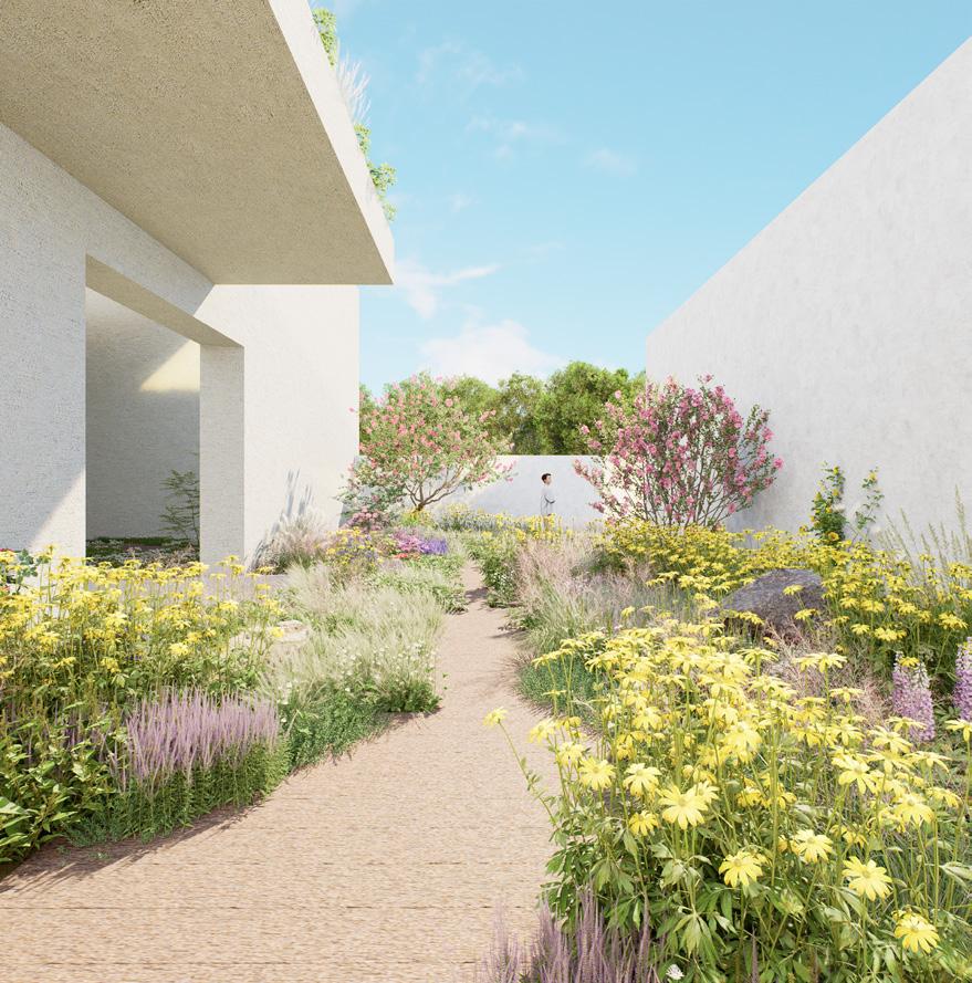 Interaction between pods is also considered, with dedicated spaces for intermingled program, such as a monarch butterfly garden distributed between two pods.