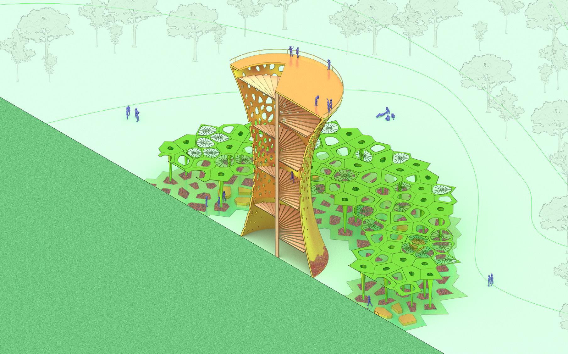 An observation tower isn’t a monument, but rather a compliment to the nature around it.