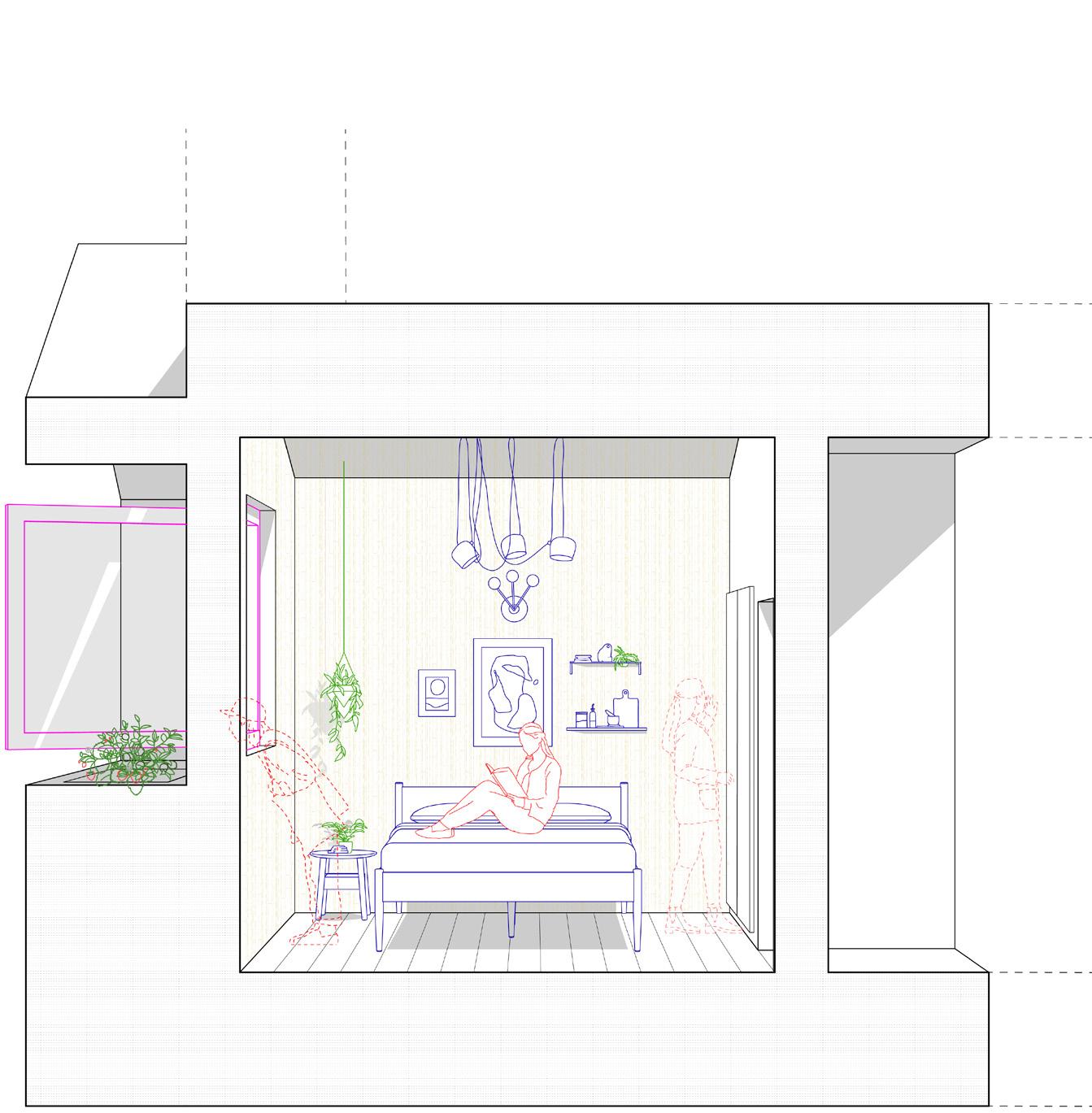 Interaction between residents is still encouraged through the distribution of bedrooms and programmed spaces.