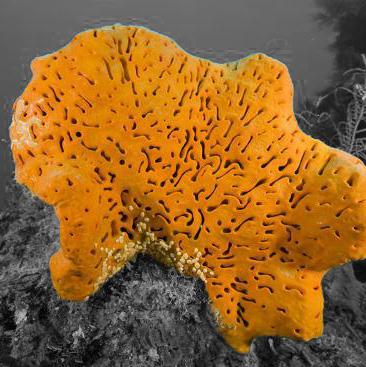 The interior of an orange puffball consists of a series of channels and chambers that circulate water and absorb nutrients. This is known as a leuconoid sponge.